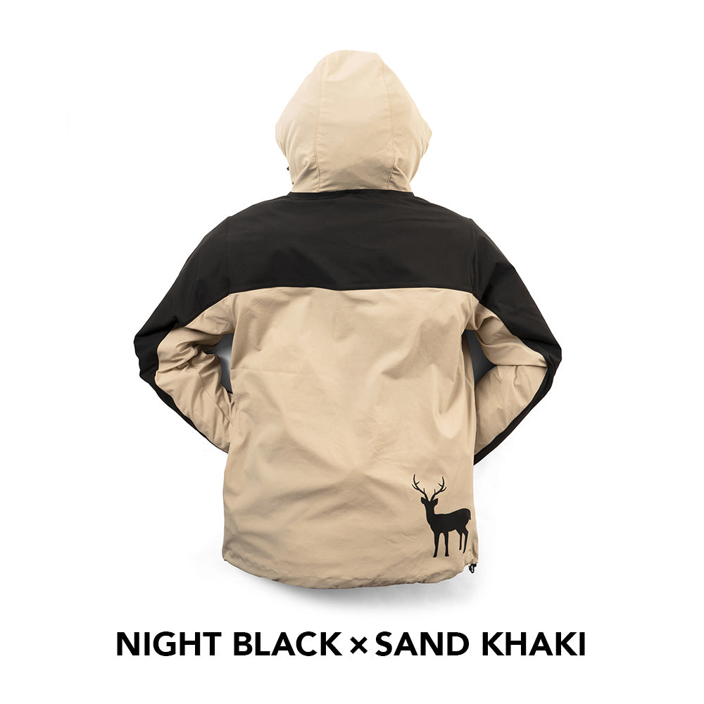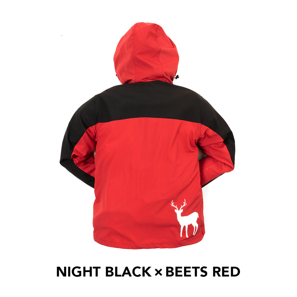 ACTIVE SHELLにあわせて落ち着いたBEETS REDをご用意。NIGHT BLACKとのバイカラーで、ジェンダーを問わずに楽しんでいただけるデザインに仕上げました。ハックサイドのエゾシカはホワイトにして遊び心をプラス。
