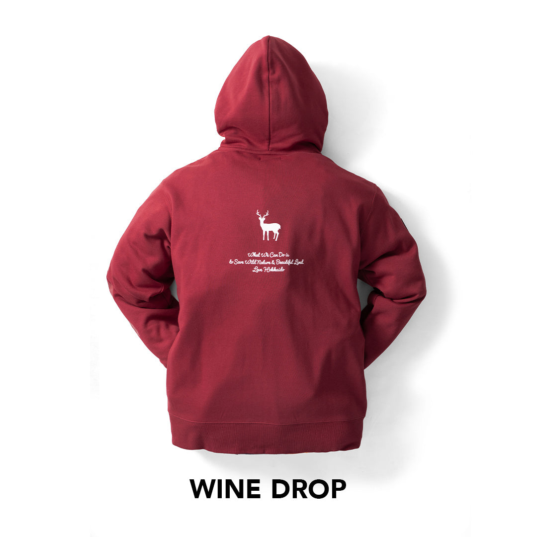 TNOCのHOODIEとしては初登場のGOLD WHEAT。明るい中にも少し落ち着いた色合いをぜひ、あなたのコーデに取り入れて。バックプリントはエゾシカをセレクトしました。