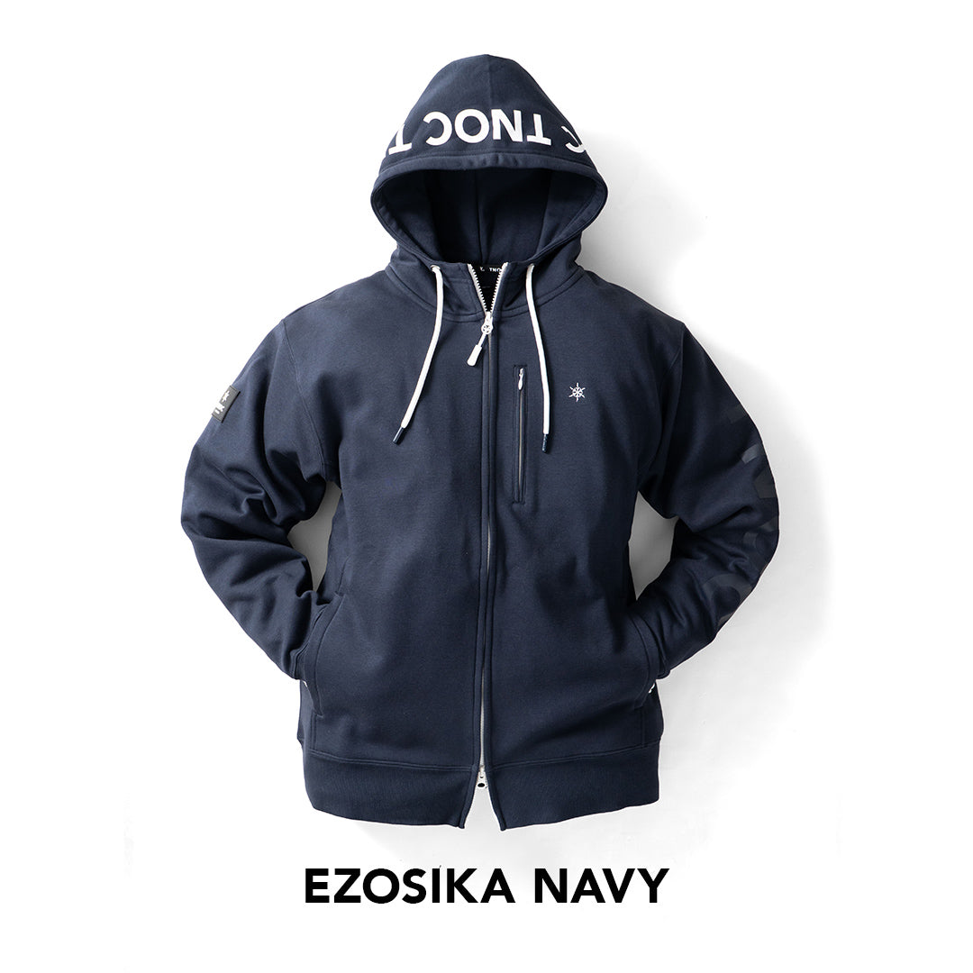 カラーもVer.3 TNOC THE HOODIE ZIPUP-YT3はカラーラインナップもバージョンアップ。カラーによって異なるバックのプリントも忘れないで。カラーで選ぶ?プリントで選ぶ?あなたのお気に入りをどうぞ。 ○EZOSIKA NAVY ○FOG GRAY ○NIGHT BLACK これがグッドサイズ。 さっとはおってリラックス感を。 細部までこだわりの品質。デザイン。 機能性のある生地 ジップの引き手にも注目して 襟の立つデザイン フードのプリントにも注目 北海道の自然を守ります。 全てのTNOCの商品は、その売り上げの一部を北海道の自然を守る活動のために寄付されます。