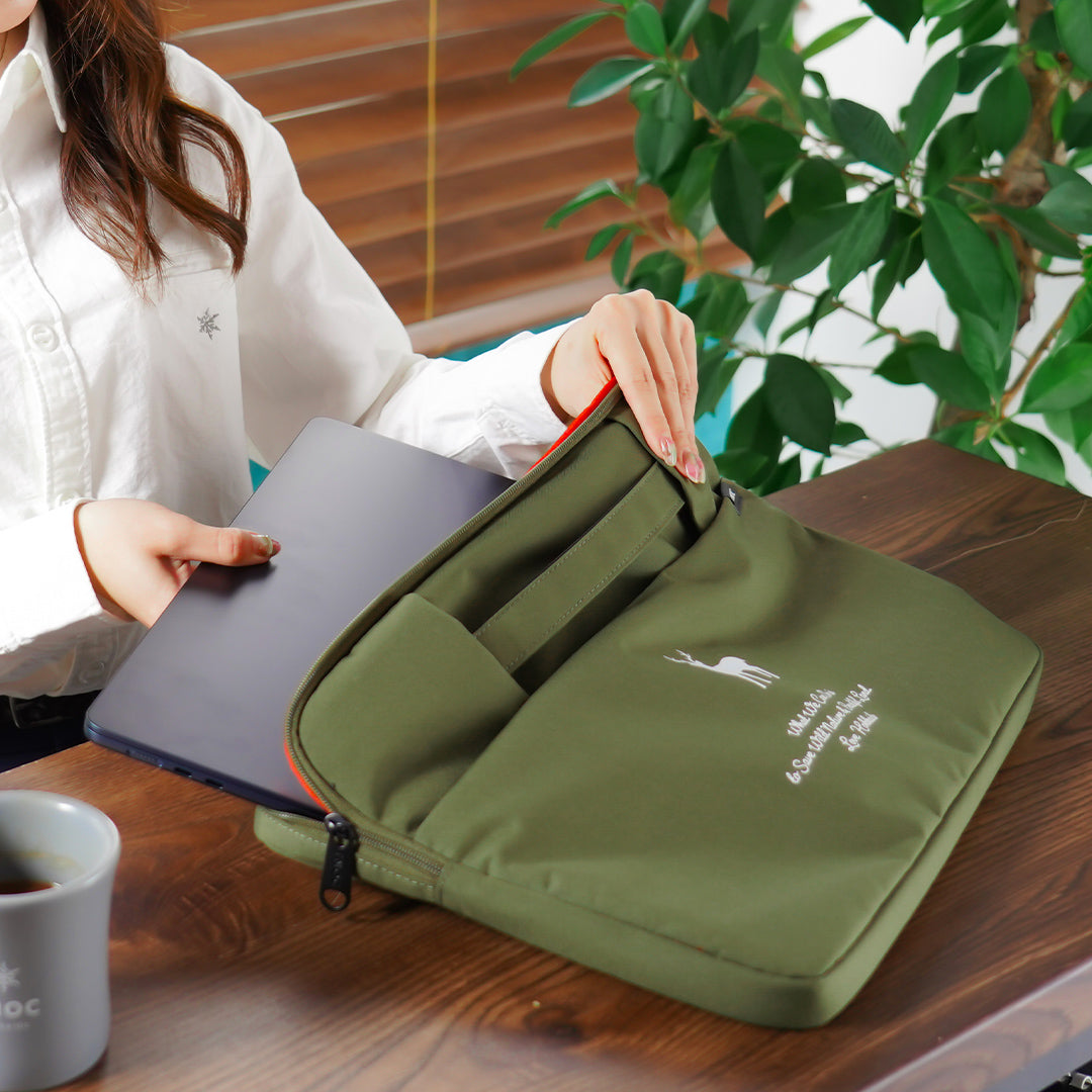 TOTE3やバックパックをより便利に使いたい方、スマートにPCを持ち運びたい方にぴったり。通勤時はトートバッグやバックパックに入れて、PCやタブレット端末をスマートに持ち運びできます。オフィスや学校に着いて、ちょっと席を立って会議室へ、お客様の元へ移動するときは、MODULE BAGだけで軽やかに、スマートにどうぞ。