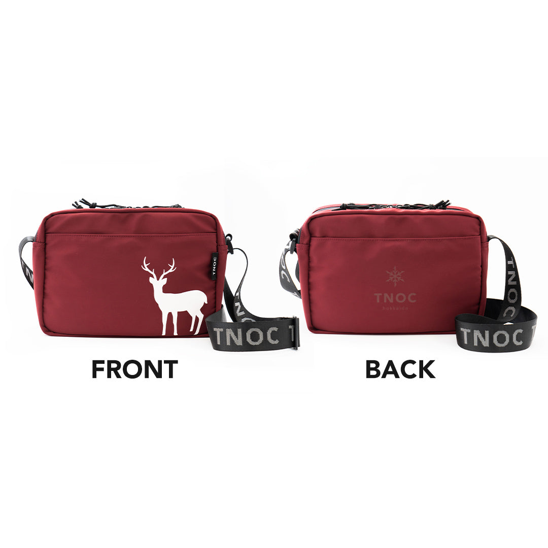 FR stands for Front / Reverse. Its standout feature is the double-sided design that lets you enjoy two different looks. One side features a bold silhouette of an Ezo deer, while the other side displays the TNOC hokkaido logo in the same color as the body of the bag.スリムなシェイプで、お買い物からお散歩まで、ちょっとしたお出かけにぴったりのメッセンジャーバッグ、それがTNOC THE mini MESSENGER-FRです。