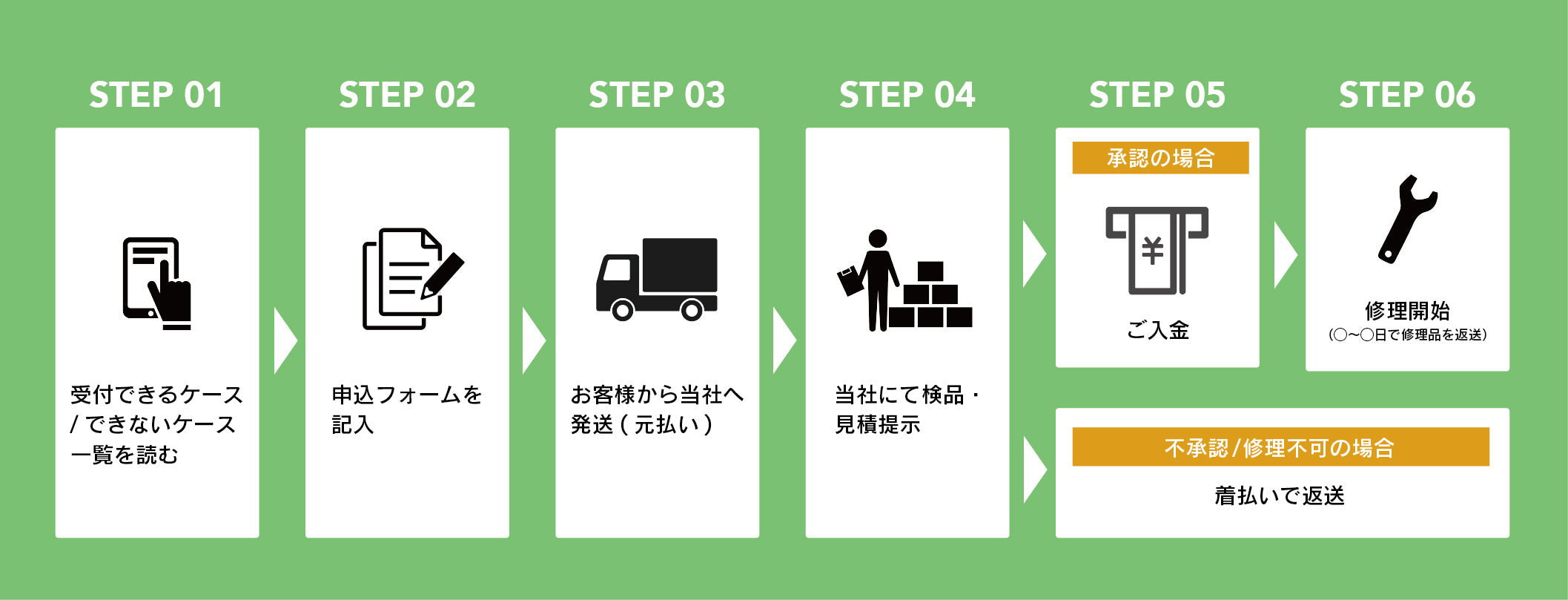 ・お申し込み後、修理品を元払いでお送りいただきます。