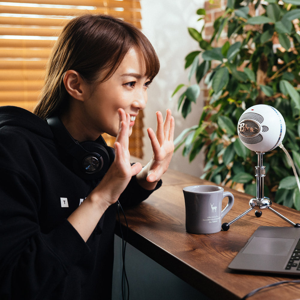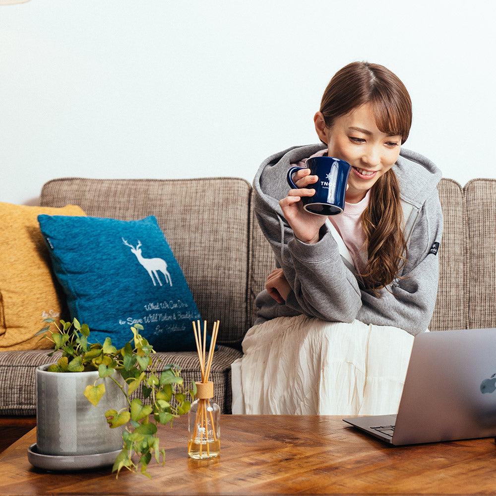 気になってたきれいめなシェアスペースからライブ配信!はちみつの入りのハーブティーをマグカップに淹れて、喉の準備もばっちり。