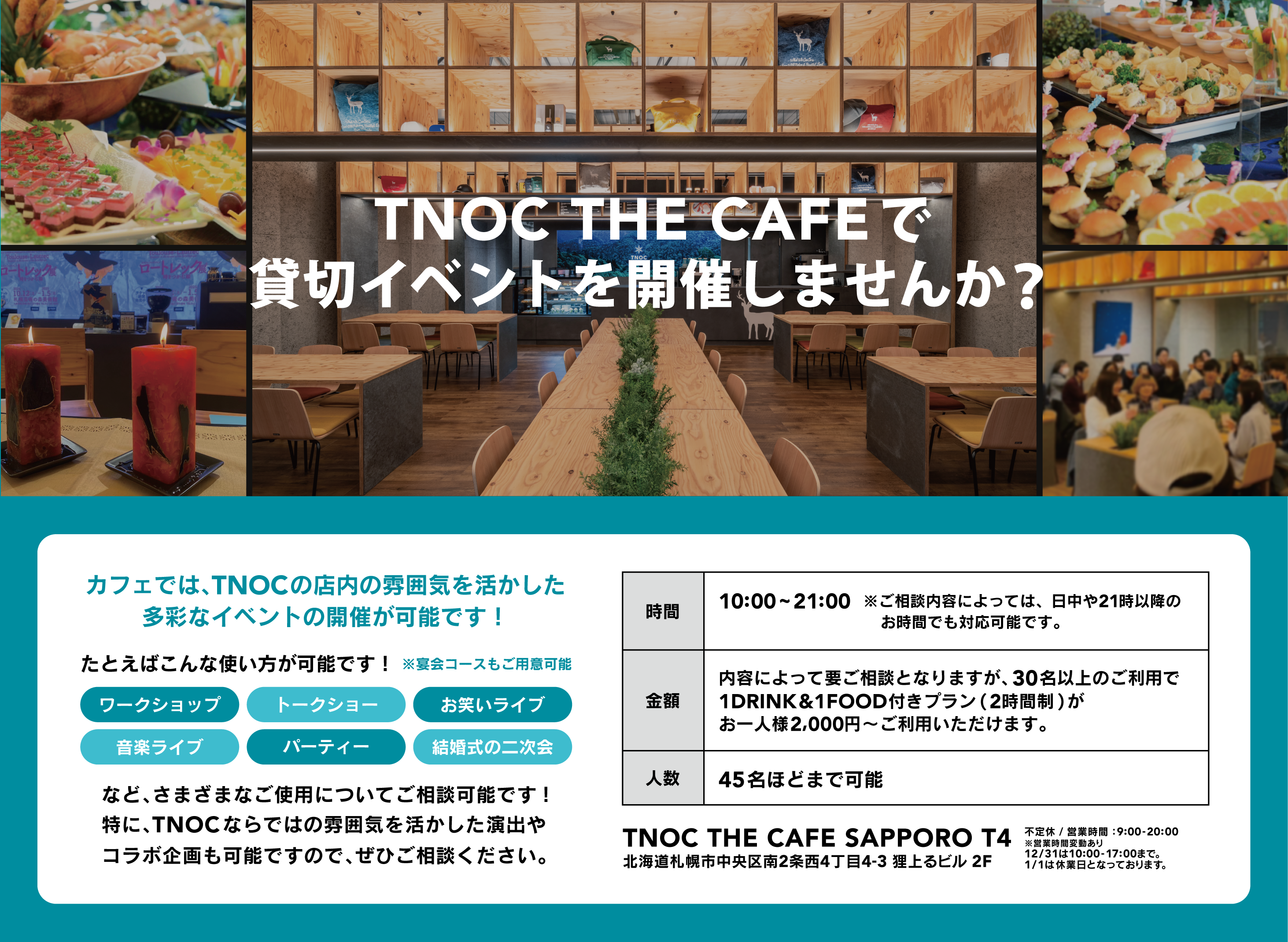 TNOC THE STORE/CAFE SAPPORO T4の1周年を記念した特別な夜の1日「TNOC THE NIGHT CAFE」を4月25日(金)開催!