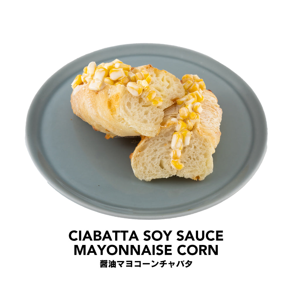 たっぷり醤油マヨをしみこませたコーンを練り込んだ「醤油マヨコーンチャバタ」、なめらかなポテトサラダを挟んだ「チーズ&ポテトチャバタ」、食事にもぴったりの「オニオンベーコンチャバタ」。どれもカフェラテやティーと相性ばつぐんのパンです。