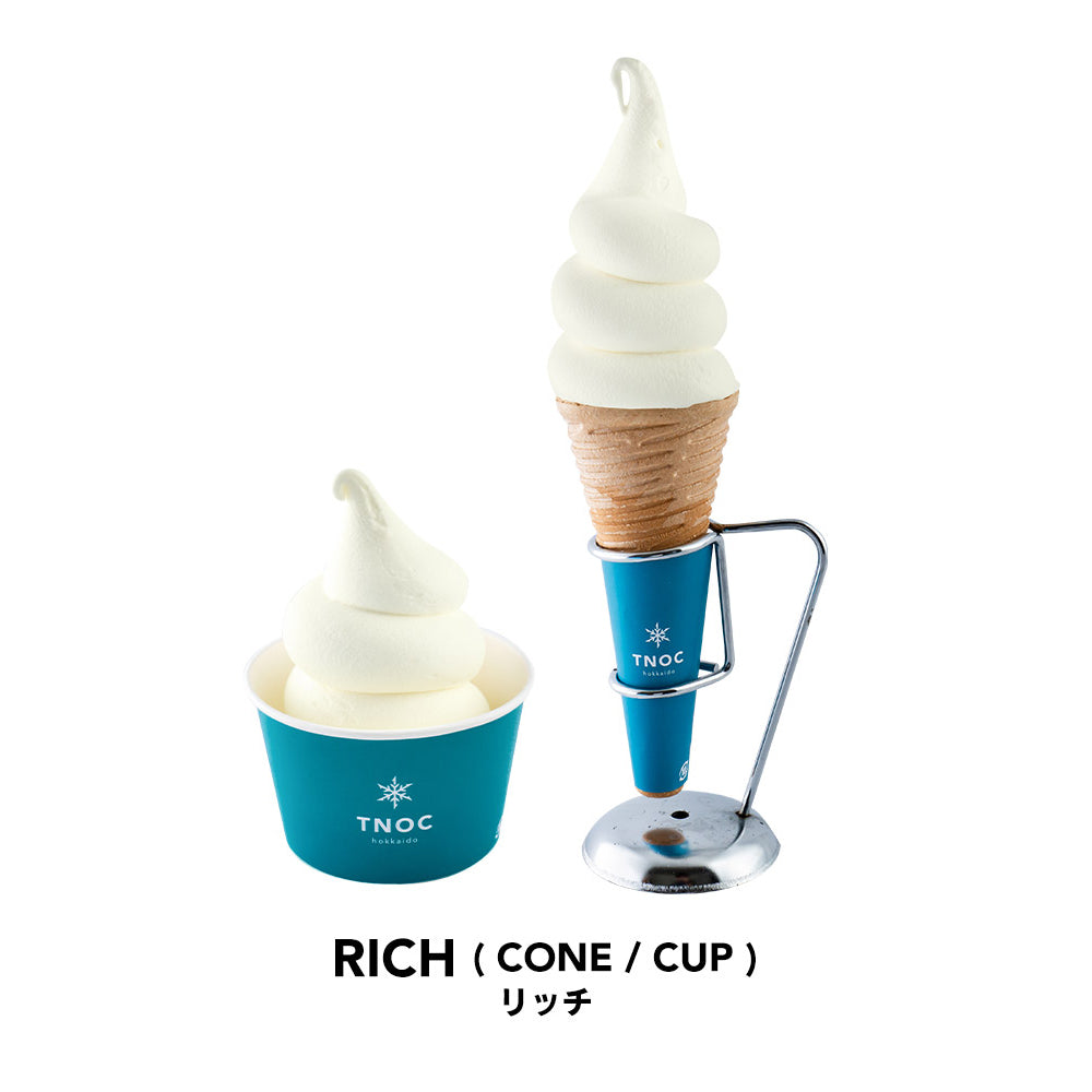 低温殺菌のおいしい牛乳本来の味わいを楽しめる、あっさりした味わいの「LIGHT」。まるで生クリームのようなきめ細かなテクスチャーと、練乳感のある濃い味わいが魅力の「RICH」。あなたはどっちのソフトクリームにする?