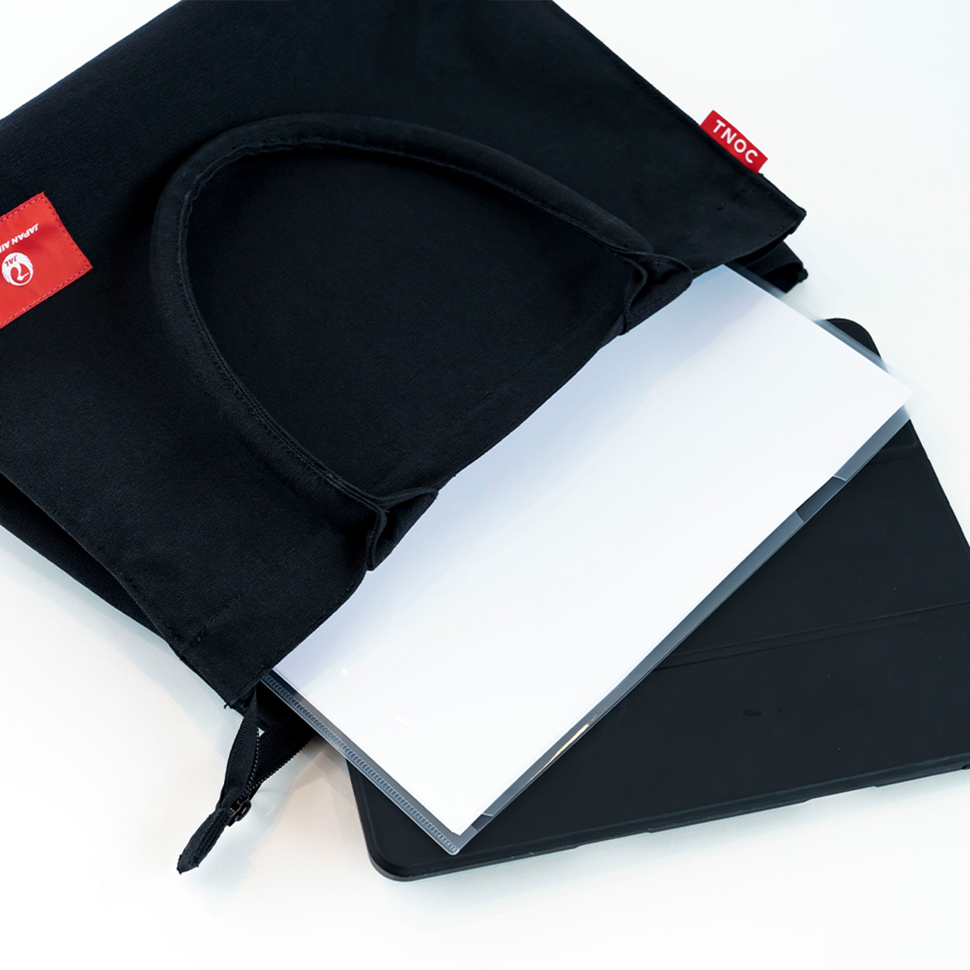 A4ファイルがぴったり入る。13インチまでのノートPCもジャストサイズのTNOC THE TOTE SKY。