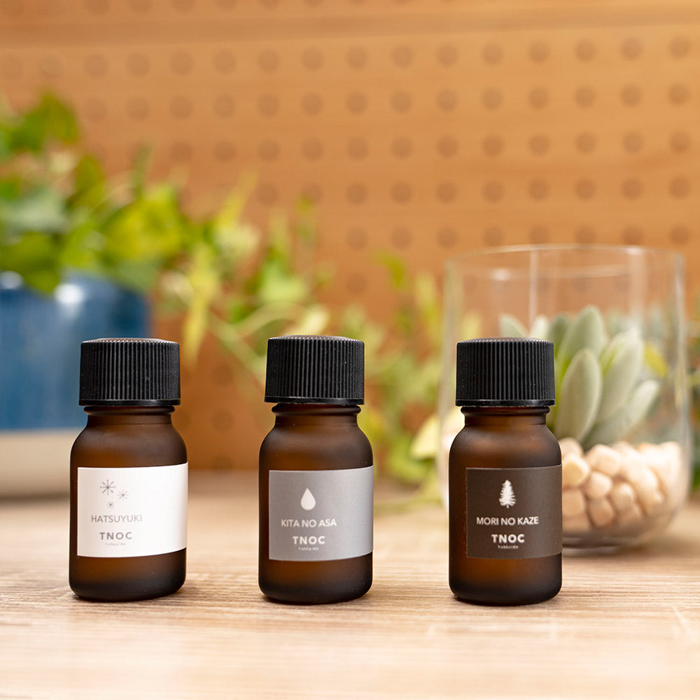 アロマオイルをディフューザーやウッドプレートに数滴垂らしたら、ゆっくりと北海道が香るまいにちを楽しんで。