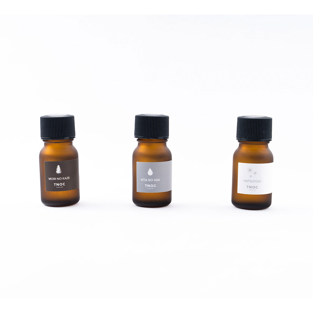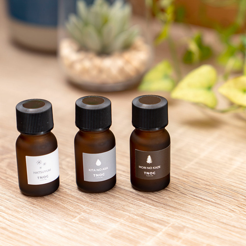 These aroma oils are inspired by the three scenes in Hokkaido. Put a few drops of aroma oil in a diffuser or a wood plate and enjoy the fragrance of Hokkaido.