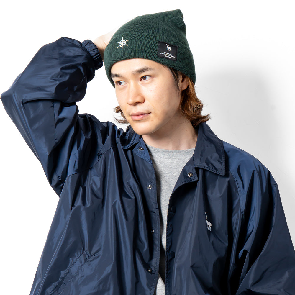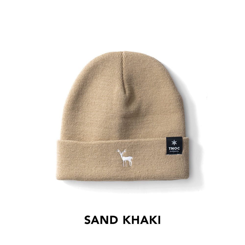 アウトドアスタイルにもぴったりなSAND KHAKIが2025年の新色としてリリース。あたたかみのあるベージュカラーは、ダウンジャケットなどにもぴったり。フロントにはエゾシカの刺繍を施しました。
