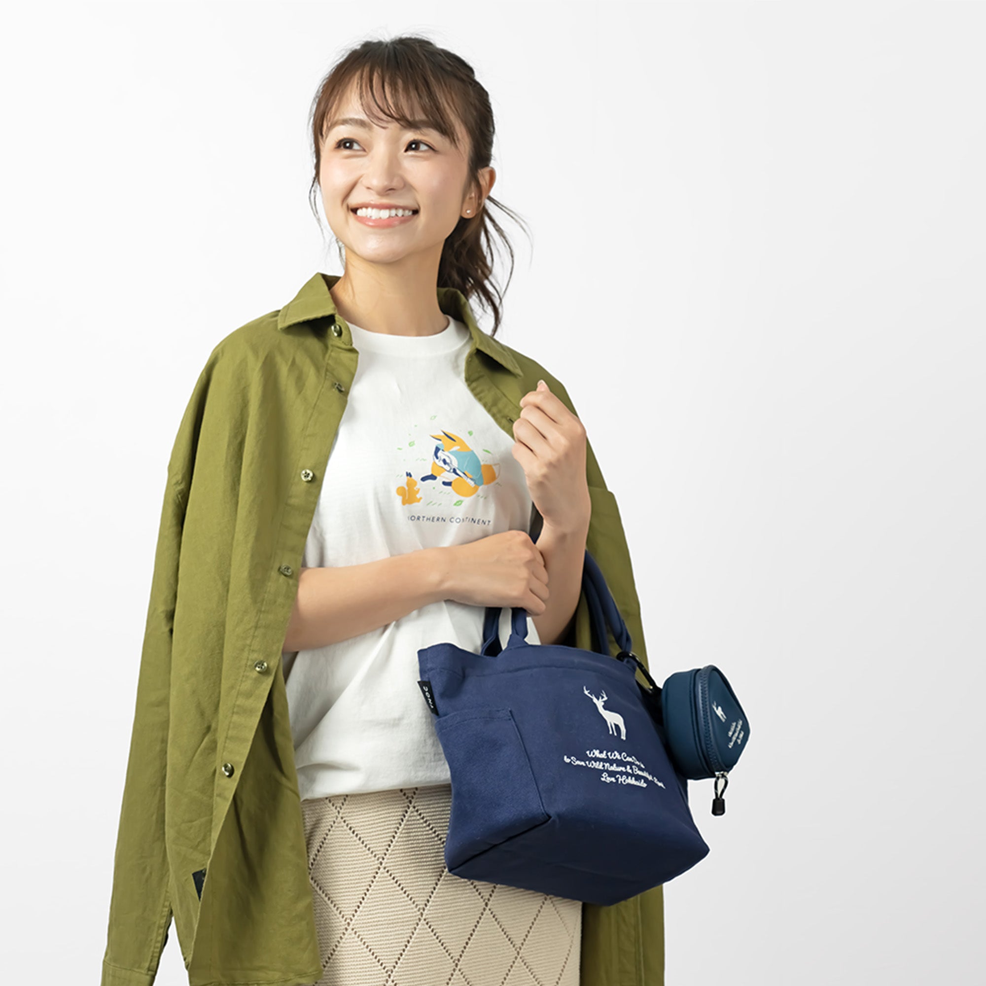 元気をくれるような明るめのネイビーは、年代を問わずに楽しめるカラー。タマゴサンドを入れても映えてくれます。