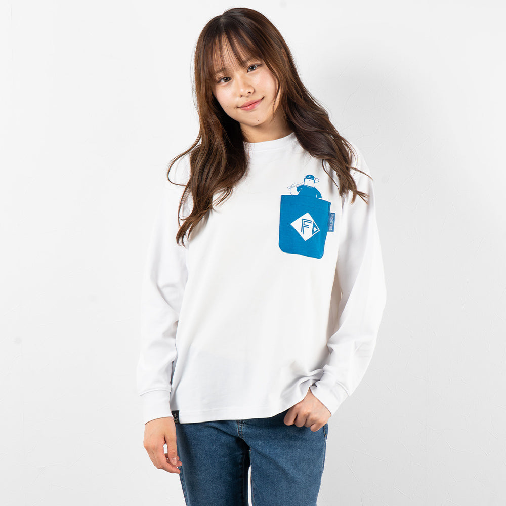 ポケットのファイターズブルーがアクセントになってかわいい。さらに、ポケットサイドには特別仕様のファイターズネームも。ジェンダーフリーだから、お友達や家族とリンクコーデするのも楽しくなります。