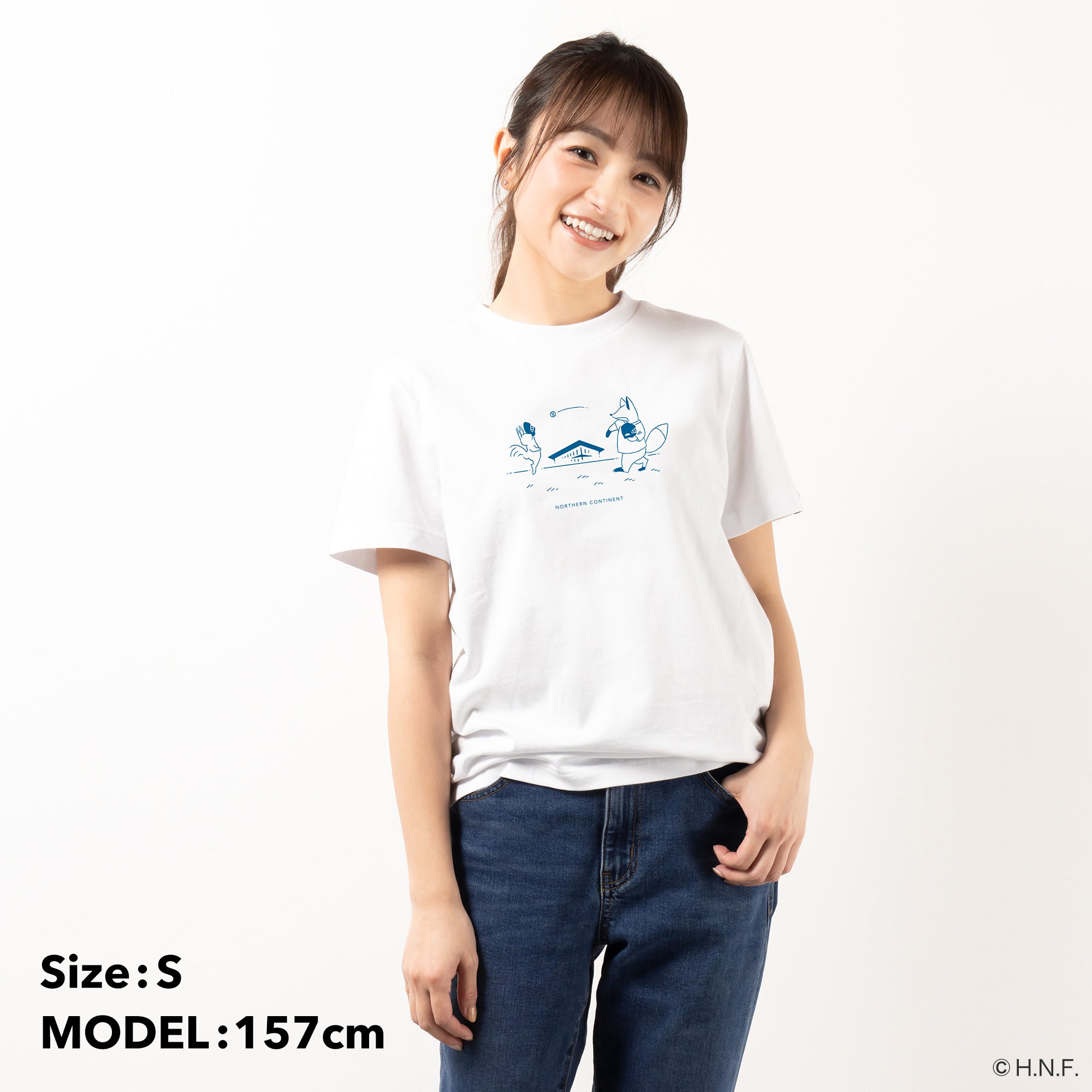 ポケットのファイターズブルーがアクセントになってかわいい。お友達や家族とリンクコーデするのも楽しく。
