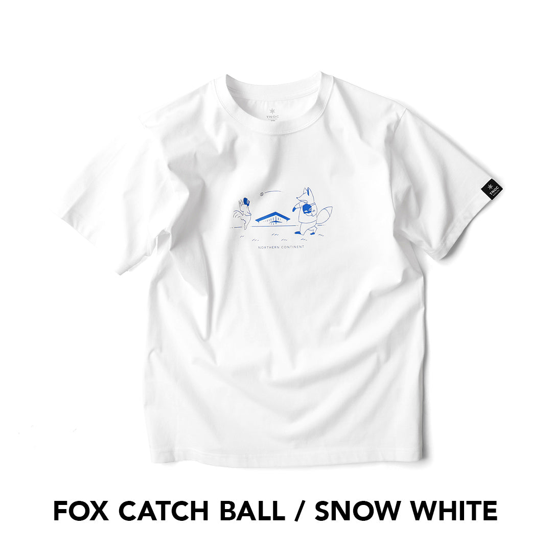 キツネとリスが楽しくキャッチボールをするイラストを描いたTシャツです。奥に見えるエスコンフィールドHOKKAIDOがポイントです♪