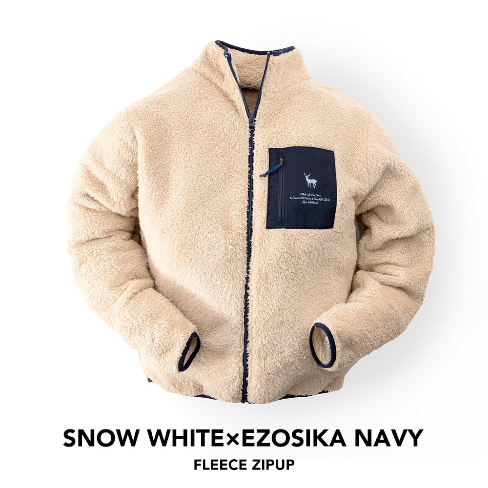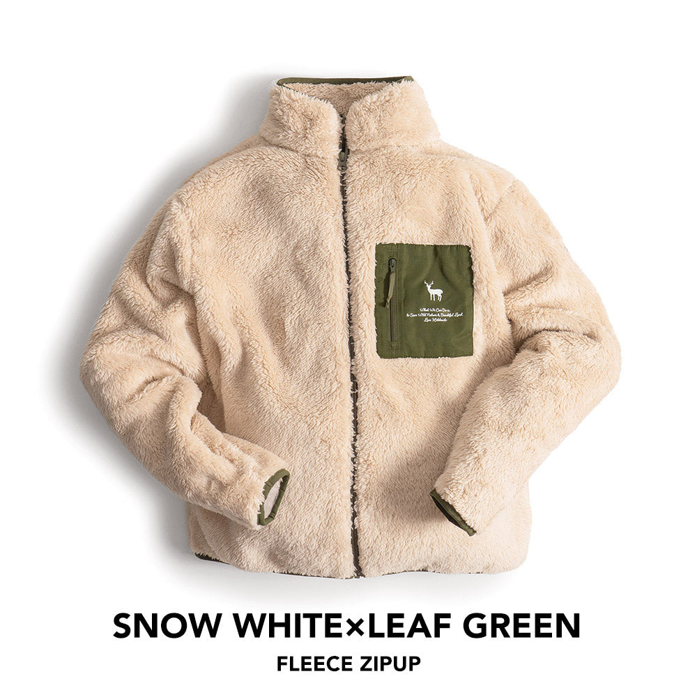 LEAF GREENE、EZOSIKA NAVY、SNOW WHITEなどをミキシングして作ったフリースです。ちょっと寒い時のアウトドアにも、あなたの気分も体温も、見た目から上げてくれます。