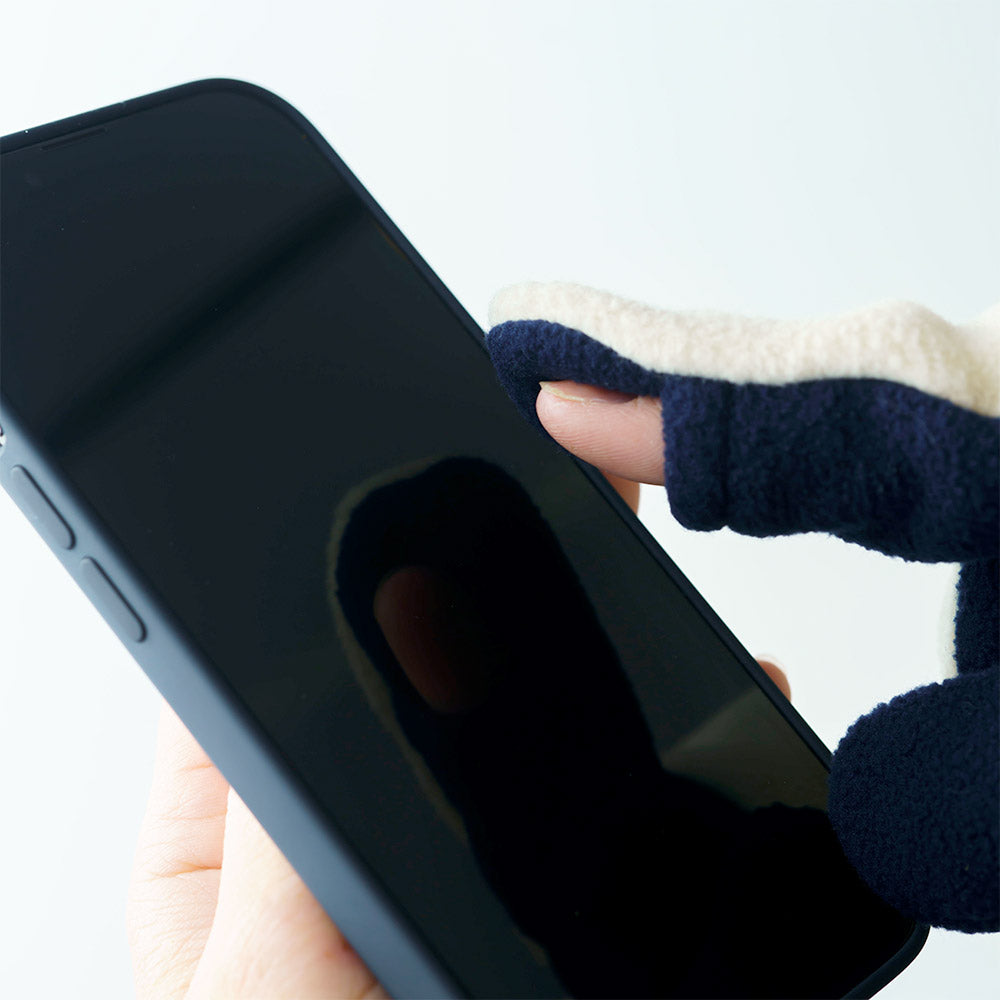 ・指先に導電性繊維が編み込まれています。指先までしっかり装着出来ていない場合、タッチパネルの反応が悪い場合がございます。