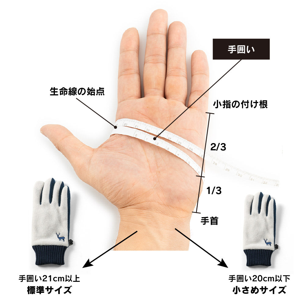 SNOW WHITE×EZOSIKA NAVY、EZOSIKA NAVY、NIGHT BLACK、BEETS RED、SNOW WHITE×LEAF GREENの全5色となりました。今年はどのカラーで冬のお出かけを楽しみますか?そして、女性や小さめの手の方にぴったりのスモールサイズが新登場。手囲い(※)が21cm以上のかたはレギュラーサイズ、20cm以下の方はスモールサイズがおすすめです。