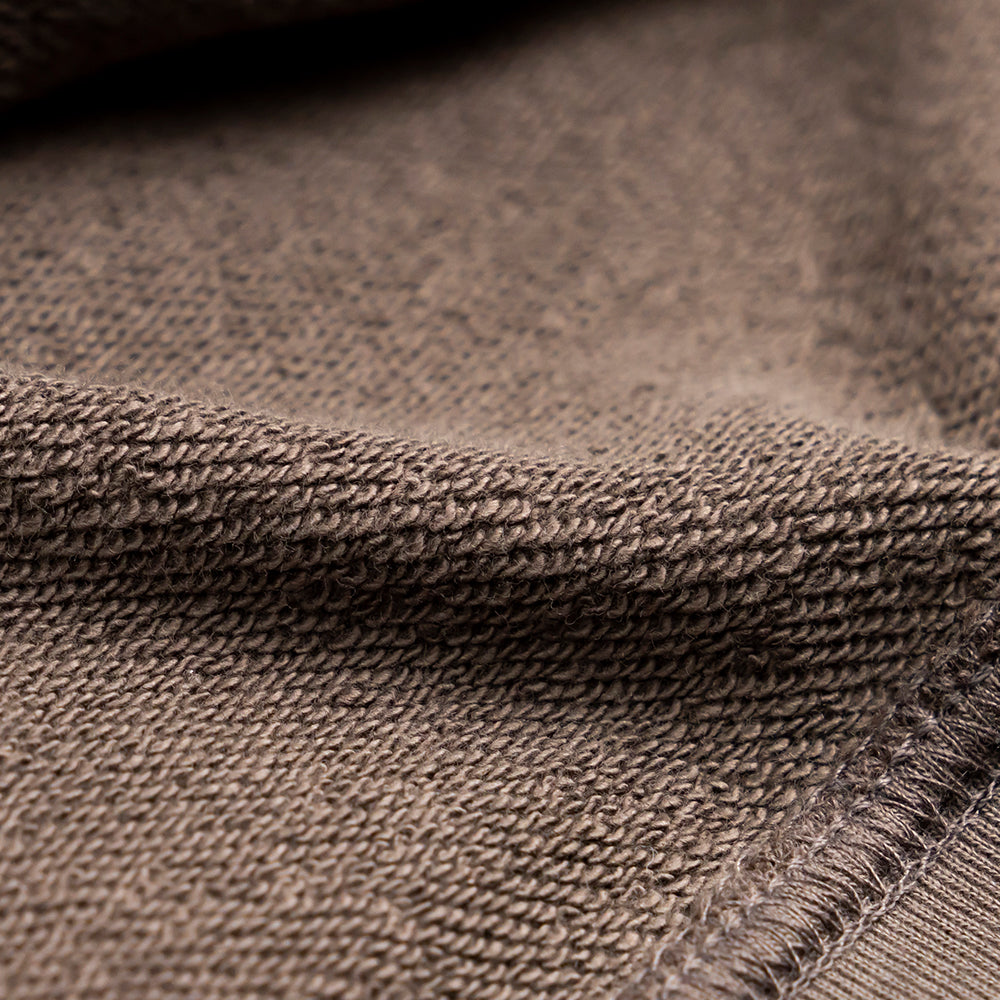 しっかりとした生地。でも裏パイルだから暑くなりすぎずに、さらっと着こなせる。