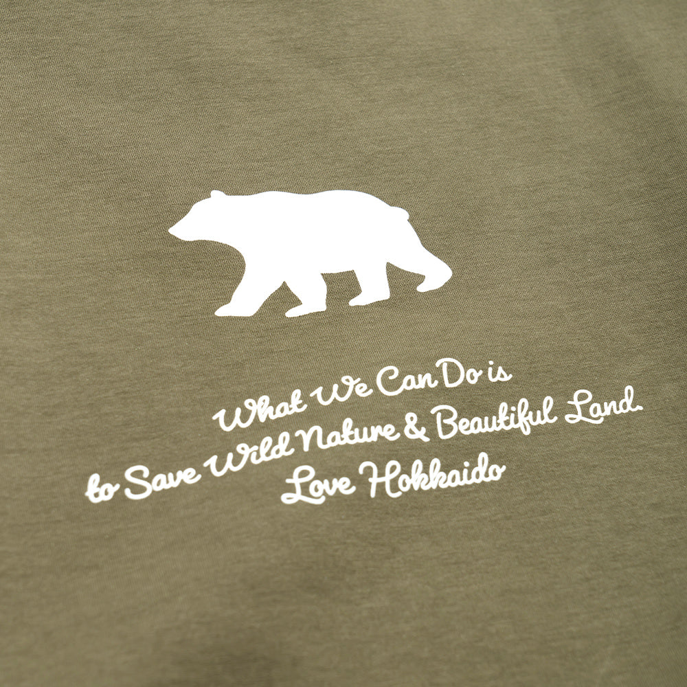 TNOC hokkaidoならではのエゾシカやクマのシルエットといったフロントプリントのデザイン、そして裾のピスネームなど、北海道を感じさせてくれるデザインに仕上げました。