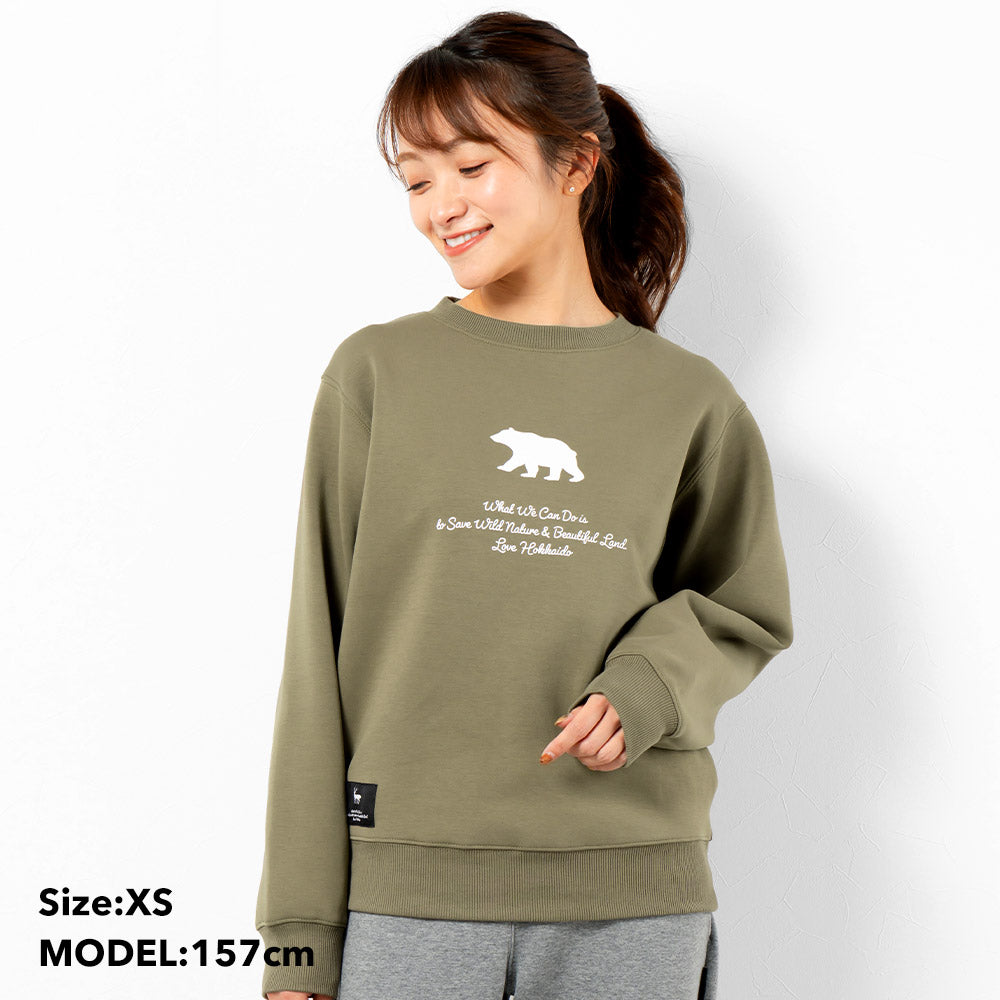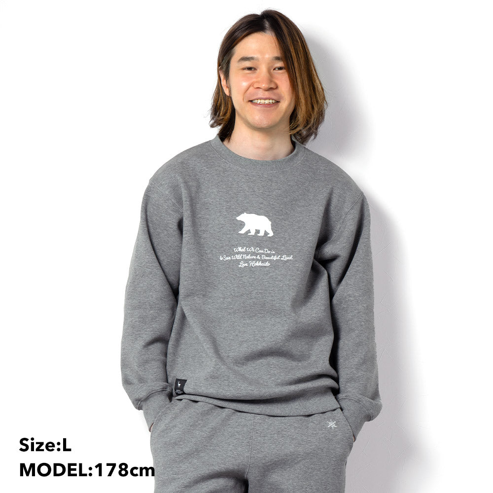 温かみのあるLEAF GREENと着回しやすいFOG GRAYには胸元に雪の結晶の刺繍、そしてバックプリントにはクマを。シンプルにデニムとあわせても個性が光ります。