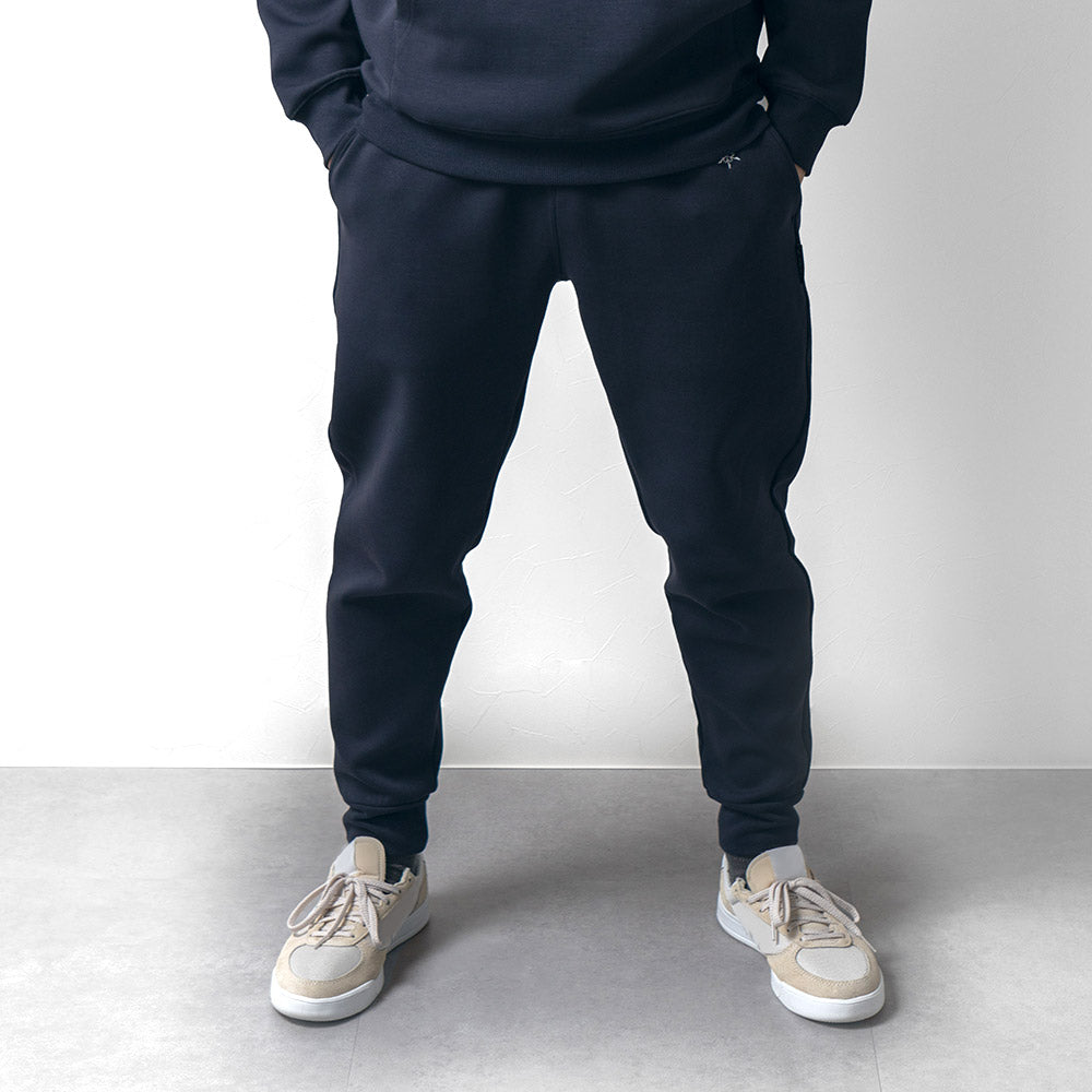 ほどよい弾力とストレッチ性。そして光の陰影も美しい、エアーニット(ダンボールニット)生地のロングパンツです。