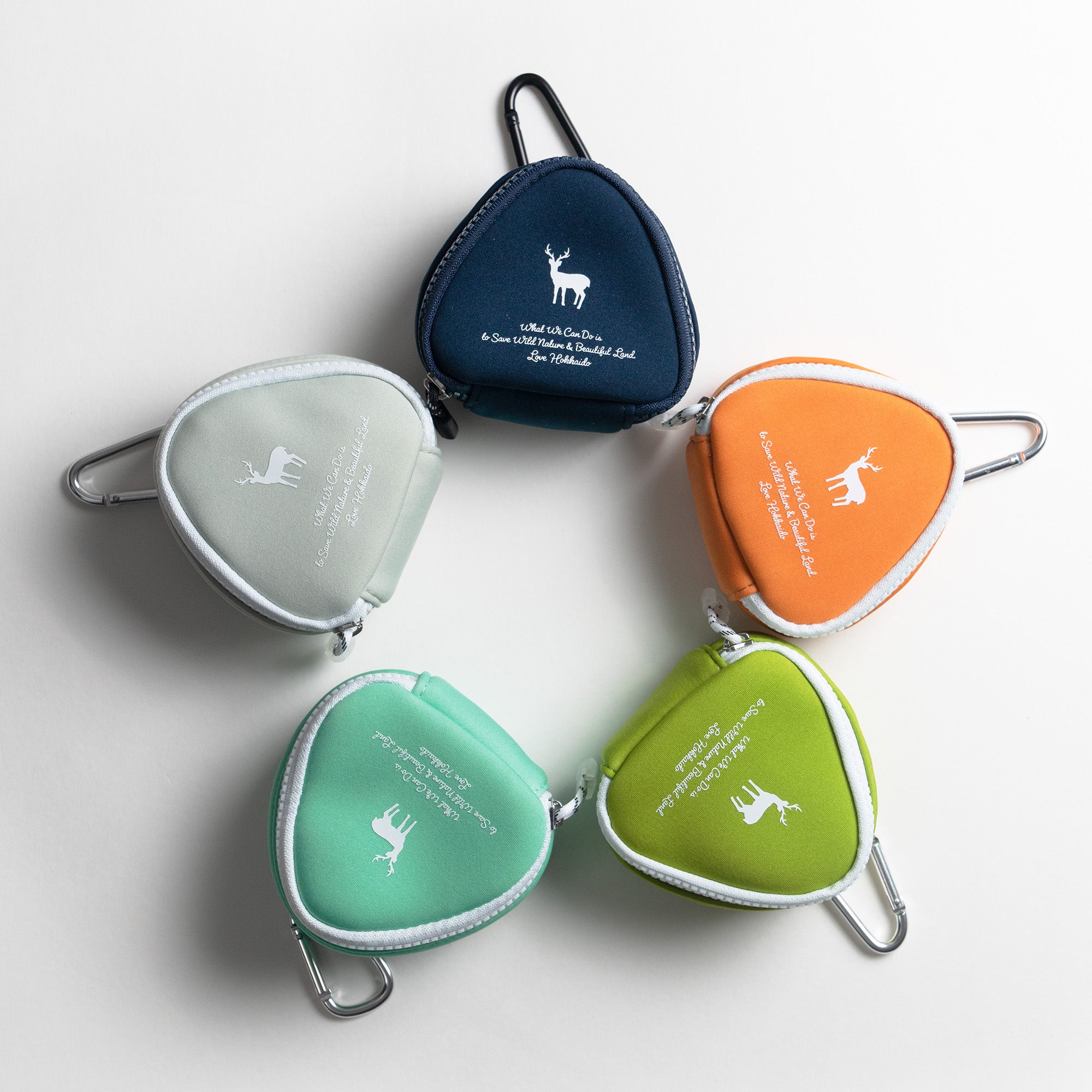 カラビナがついてるのでTNOCのバッグやリュック、ベルトにサッとつけて持ち運びできます。横幅11cm高さ10cmマチ9.5cm重さ25g