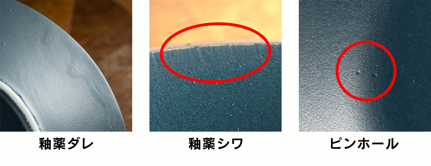 この点については、陶磁器独特の風合い、商品特性の一端としてご理解ください。