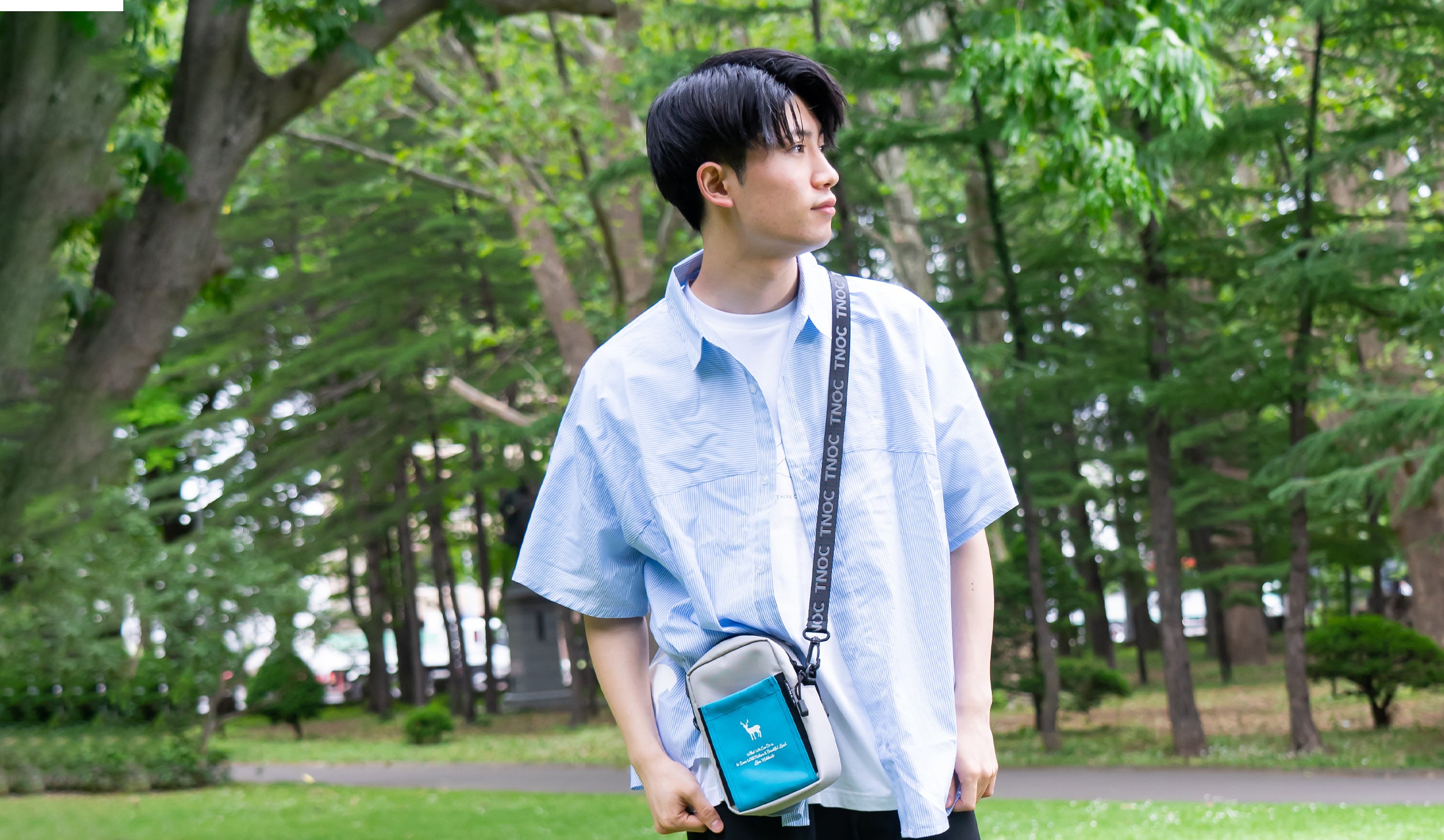 バックプリントのエゾシカシルエットは、まるでフラッグのように風になびいてTNOCのアイデンティティを表してくれます。
