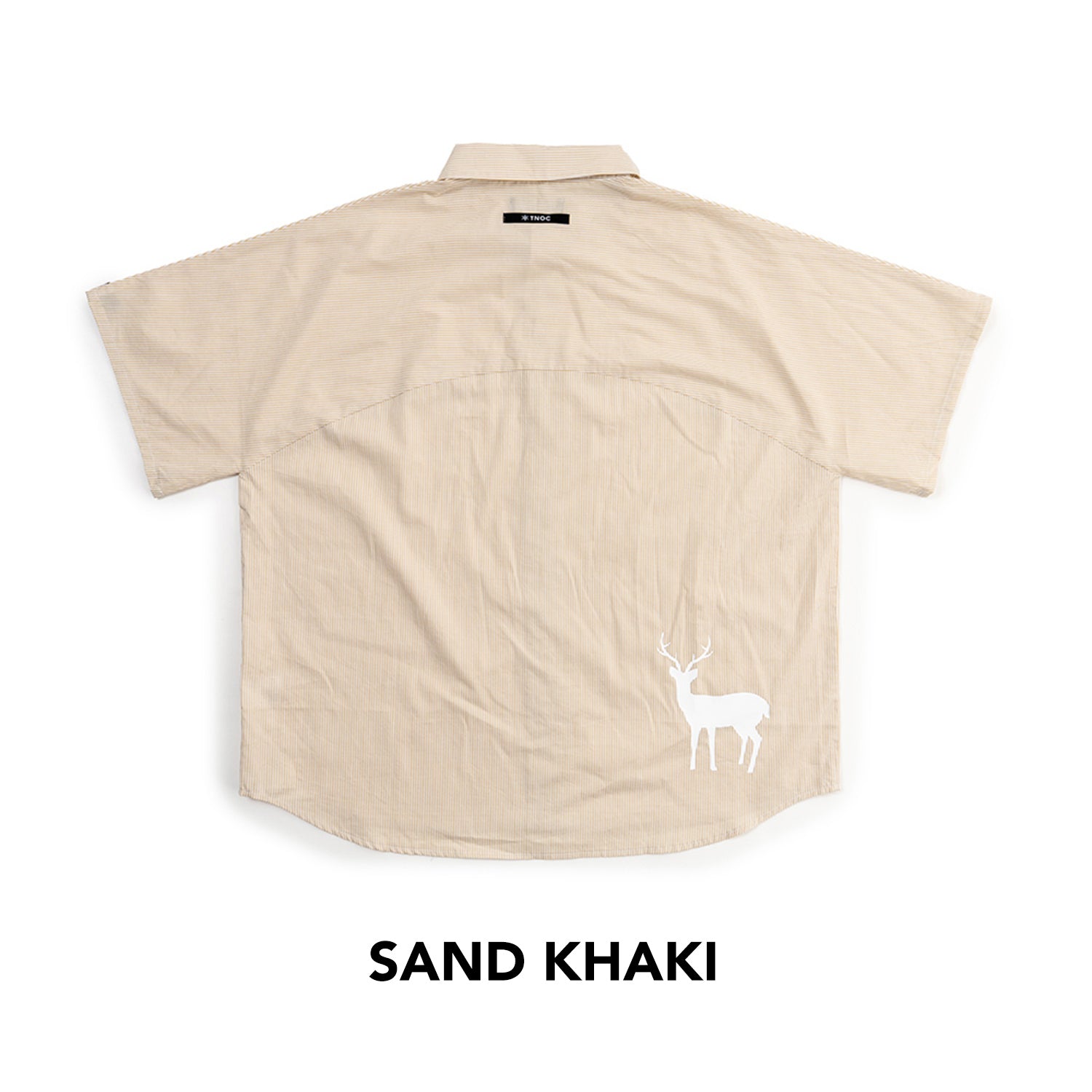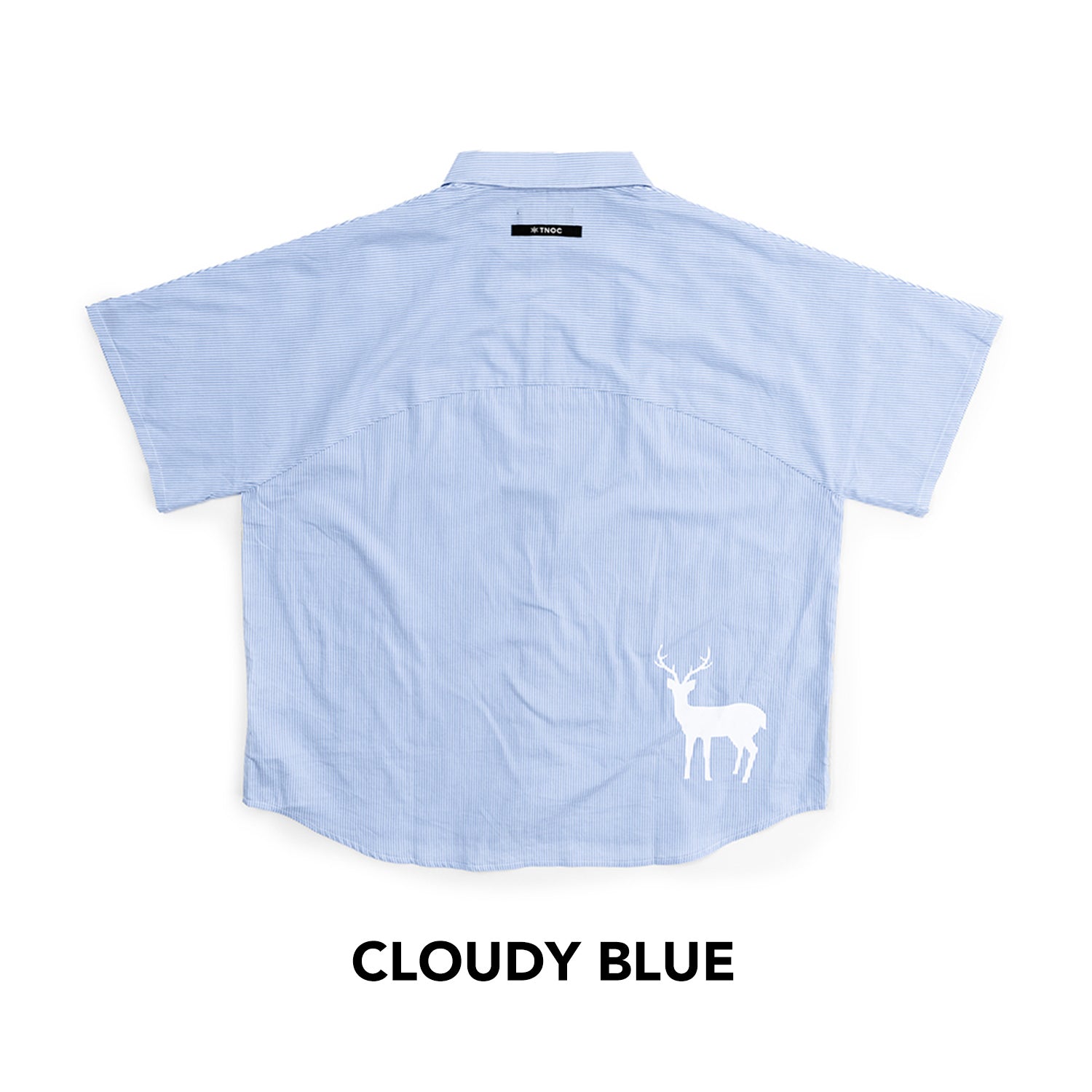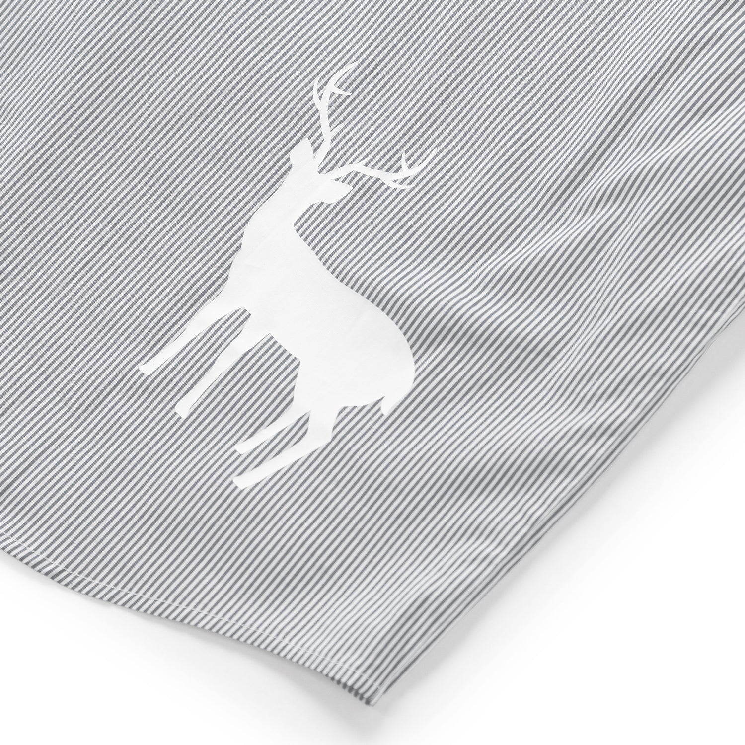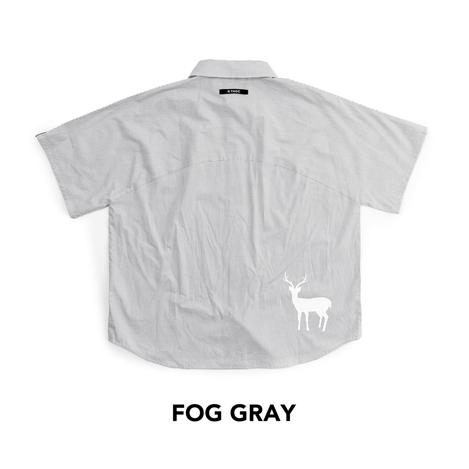 大人の印象を与えてくれる落ち着いたFOG GRAYは、スラックスとあわせて夏のビジネスカジュアルにもぴったりです。胸元はシックに雪の結晶の刺繍を。バックプリントのエゾシカシルエットがビジネスにも遊び心を生んでくれそうです。