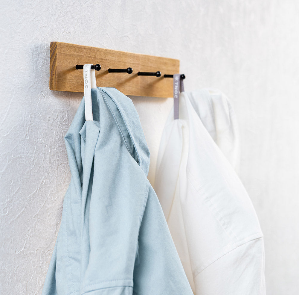 背中のハンガーループでちょっと脱いでおくときもサッと引っかけられシワになるのを防ぎます。