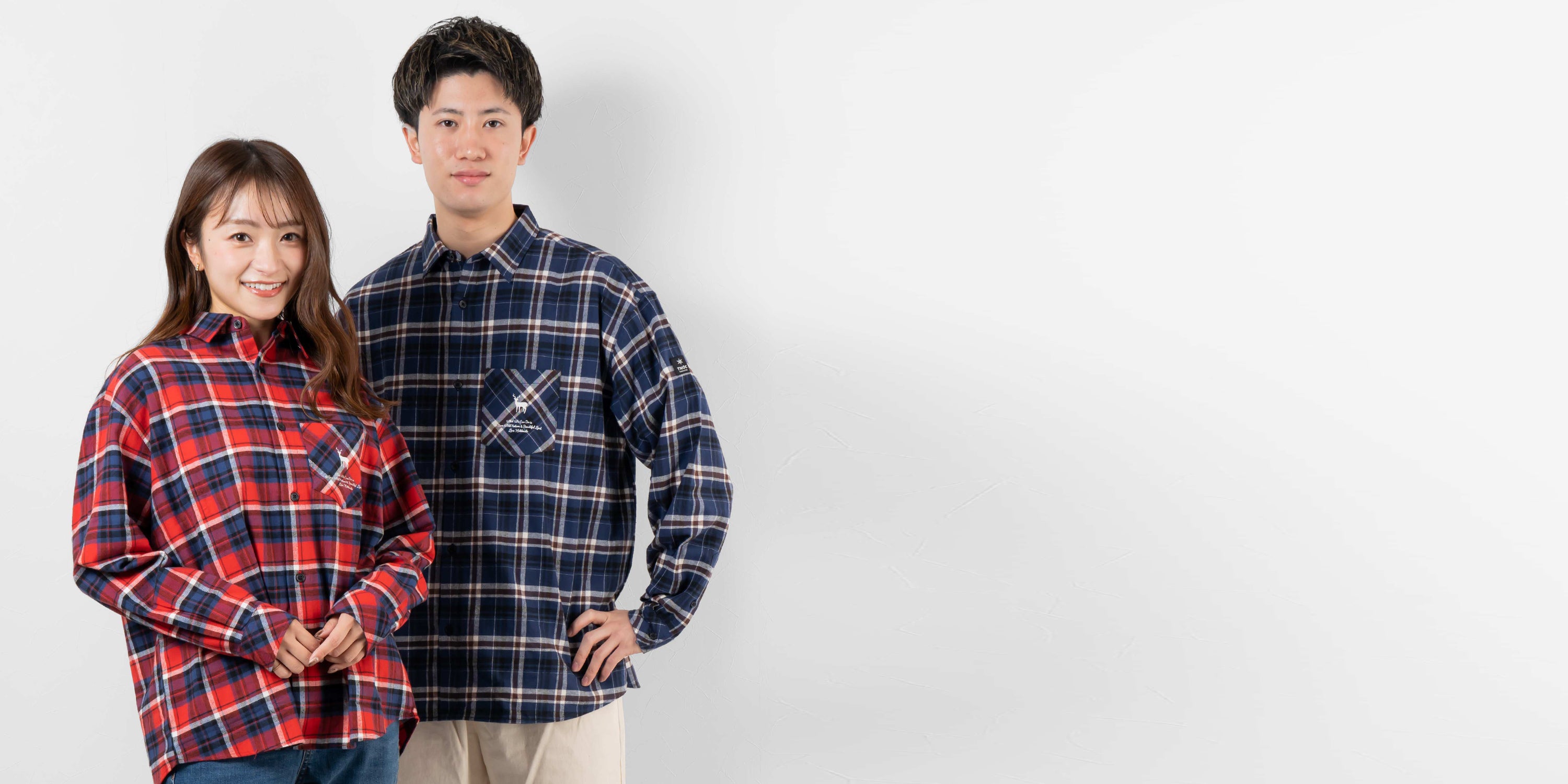 少し肌寒い季節にアウターとして羽織って。冬にはセーターやベストのインナーとしても素敵です。この冬、あなたをやさしさで包み込むフランネルシャツをどうぞ。