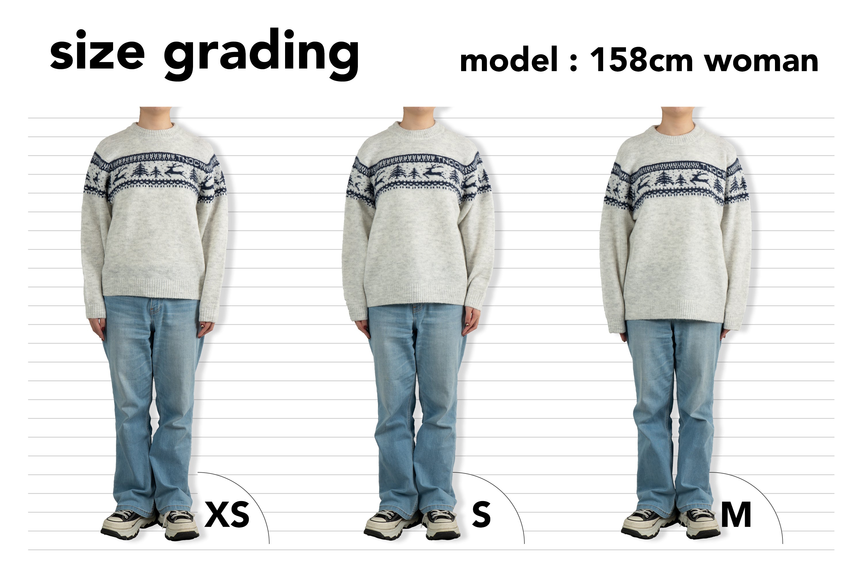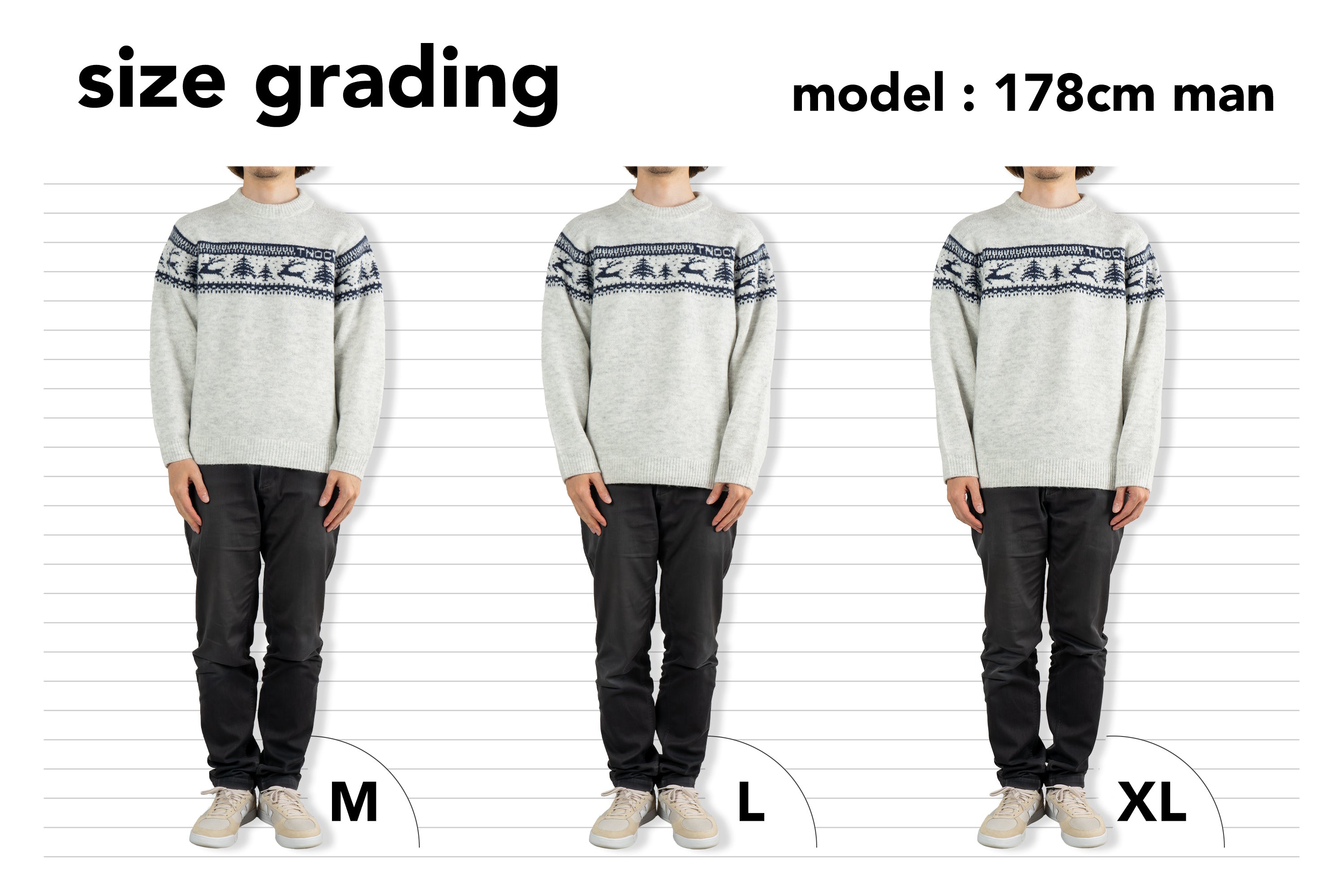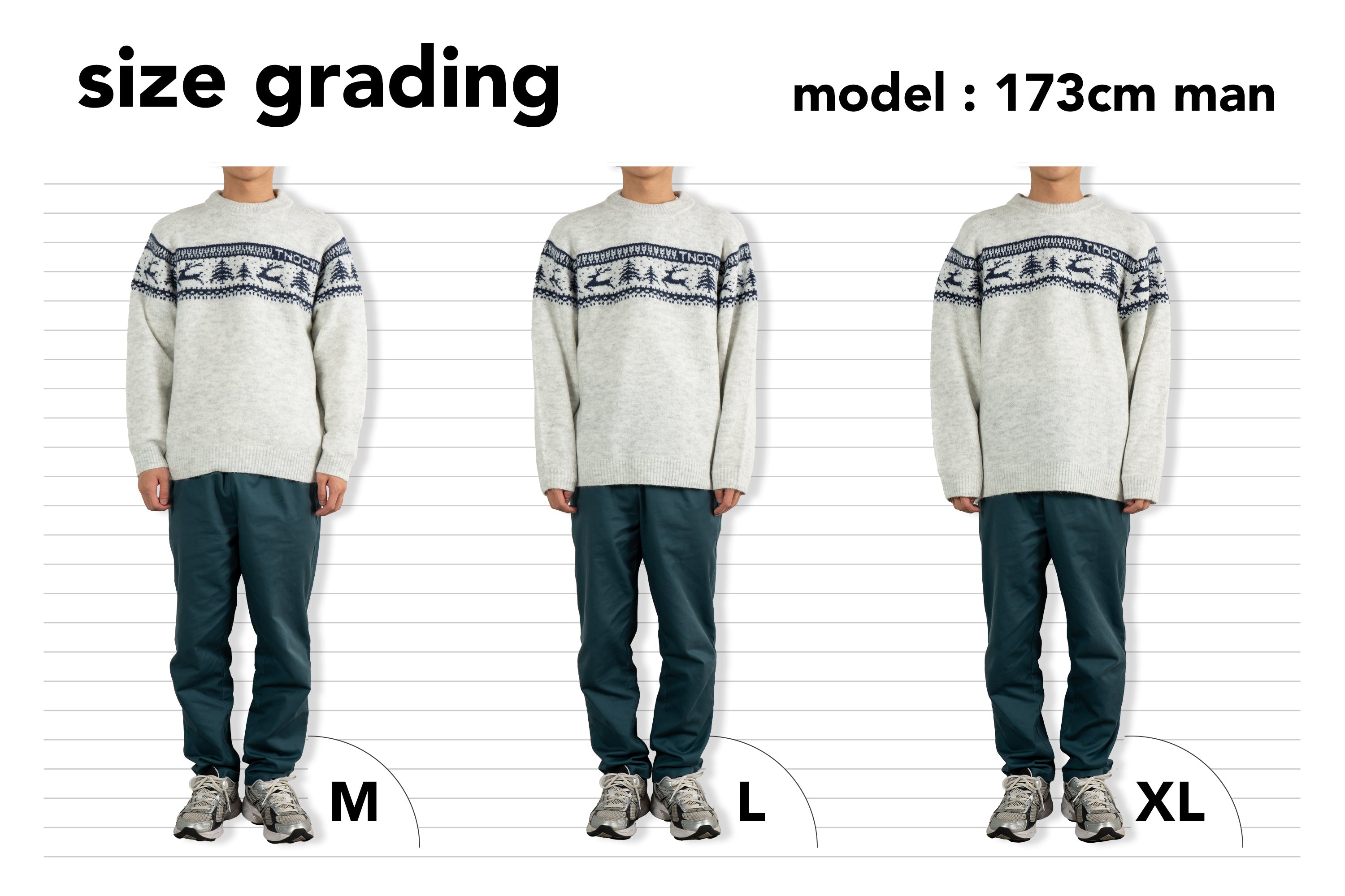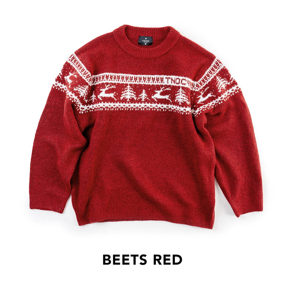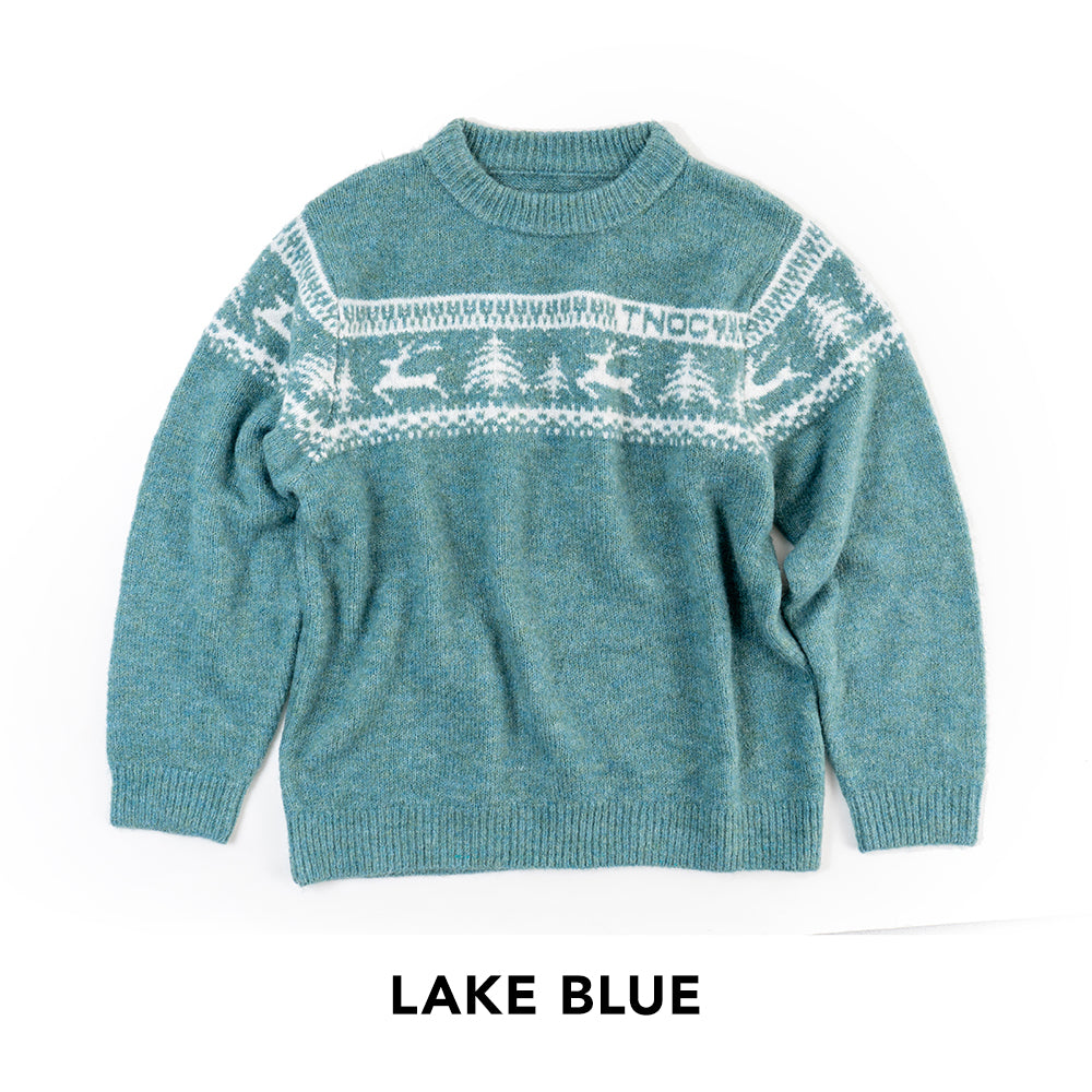 Introducing the refreshed TNOC classic sweater, now featuring an enchanting design inspired by Ezo deer, Ezo pine trees, and softly falling snow.