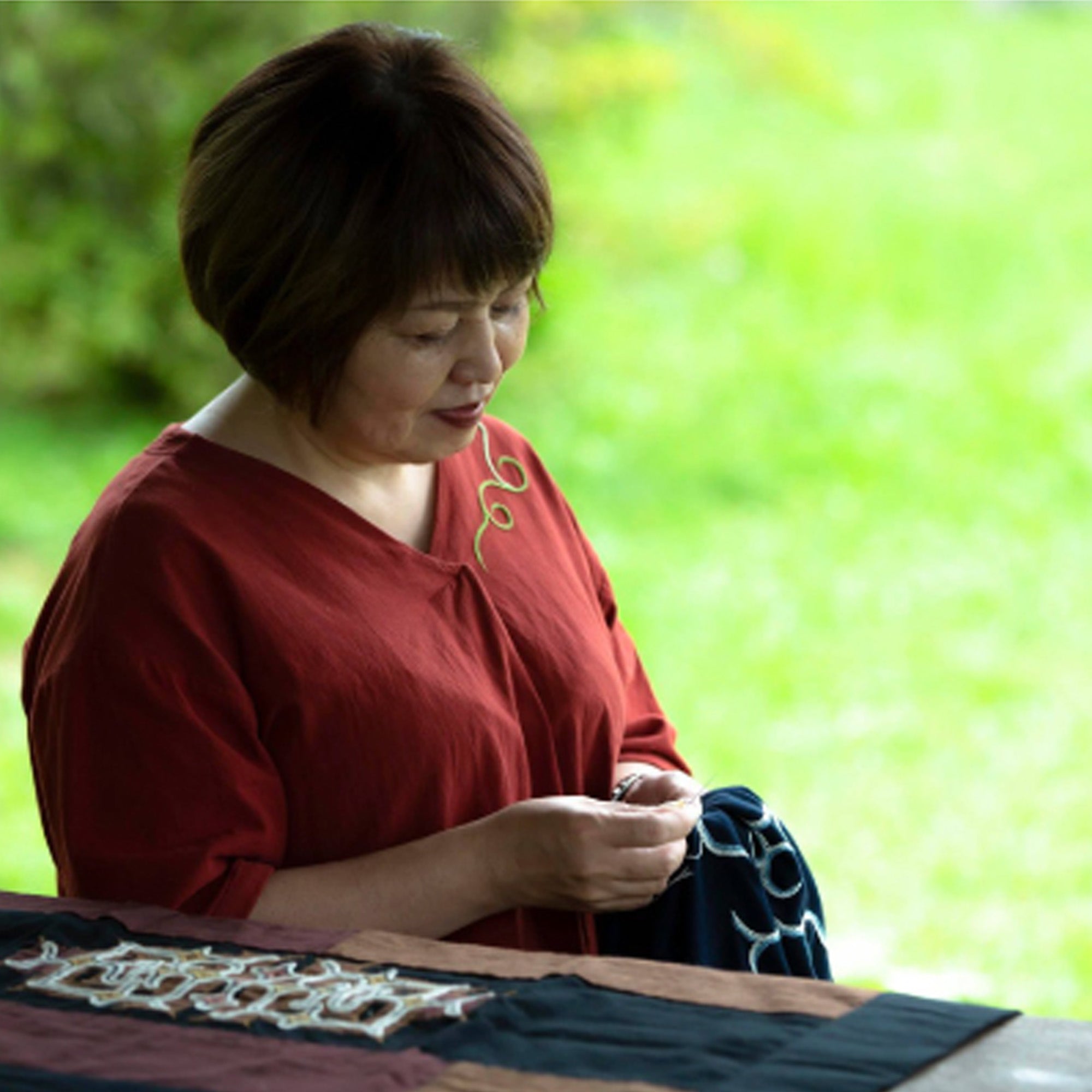 祖父母の代よりアイヌの文化や工芸にふれながら育ち、自然に心惹かれて木彫り、アットゥシ織り、アイヌ文様の刺繍などの技術を身につけました。より多くの人たちにアイヌ文化の魅力を知ってもらいたいと、オールマイティに多彩な作品を手がけています。