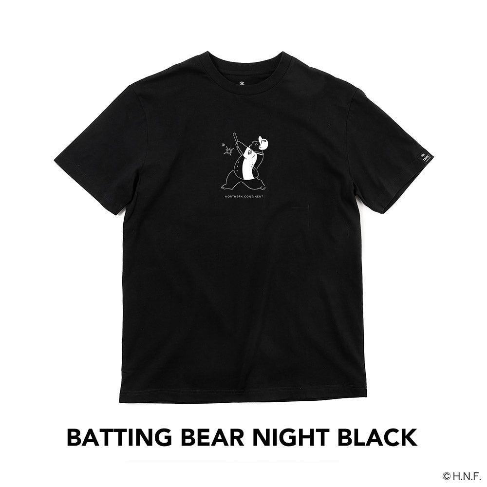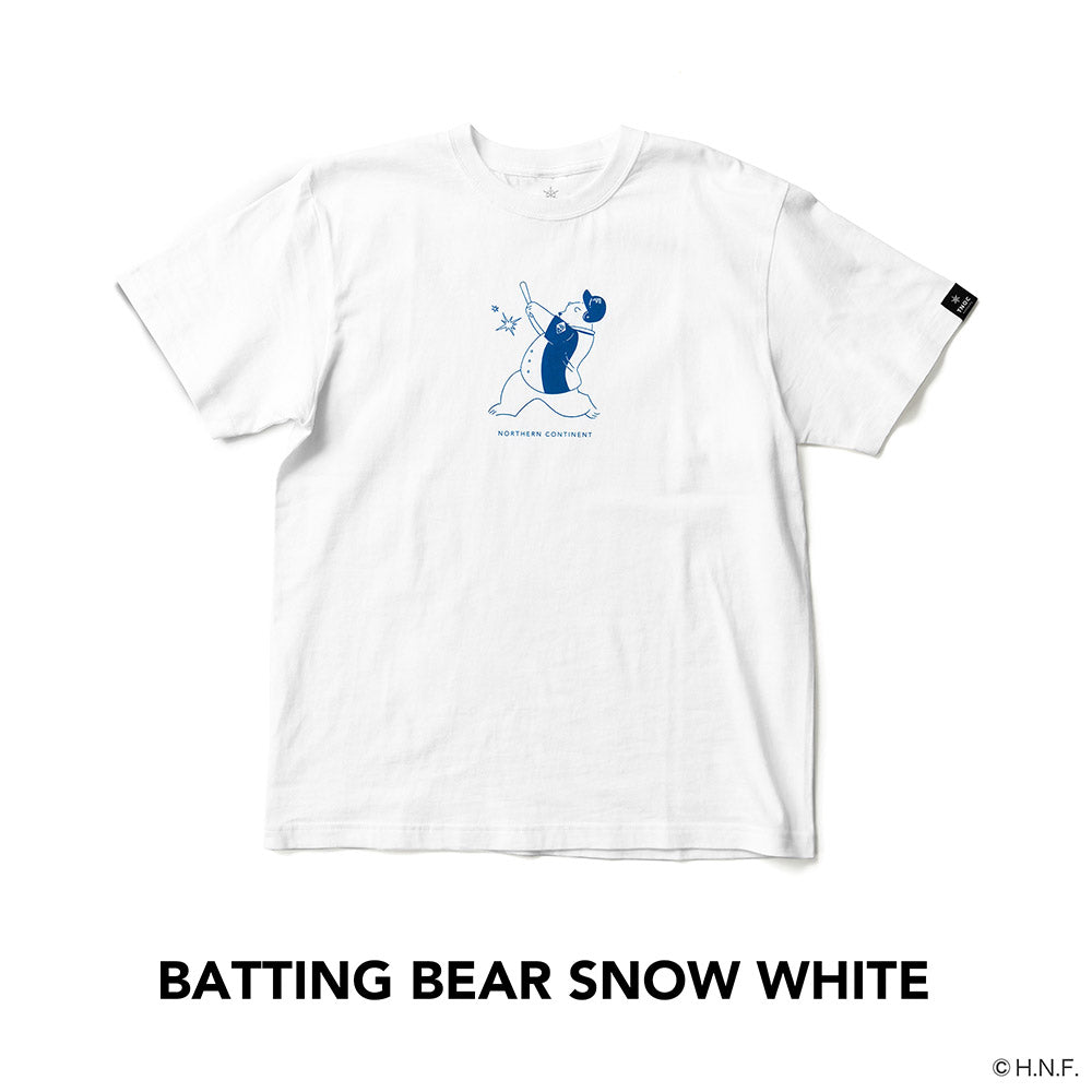 北海道の大地の物語をイラストにした「NORTHERN CONTINENT」シリーズにF/MODEだけのオリジナルデザインができました。・しゃけまる好きにはたまらない!?ファイターズの選手に憧れて、しゃけまるをバットの先に吊して持ち帰るクマを描きました。試合観戦時はもちろん、ふだん使いとしてもぴったりの、遊び心のあるTシャツです。