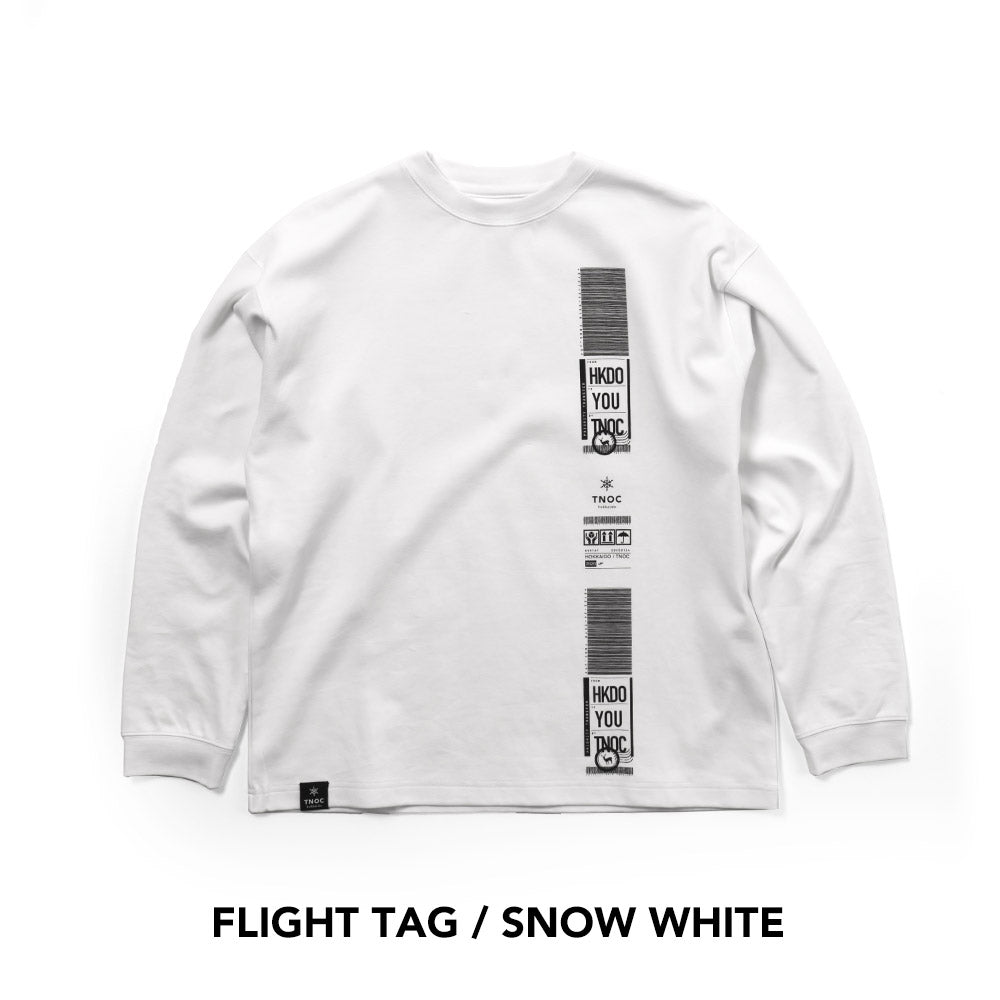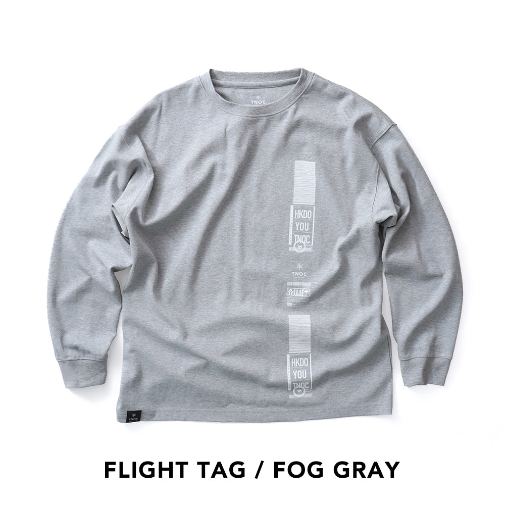 モチーフは飛行機のフライトタグ。旅の気分も高まるTシャツです。