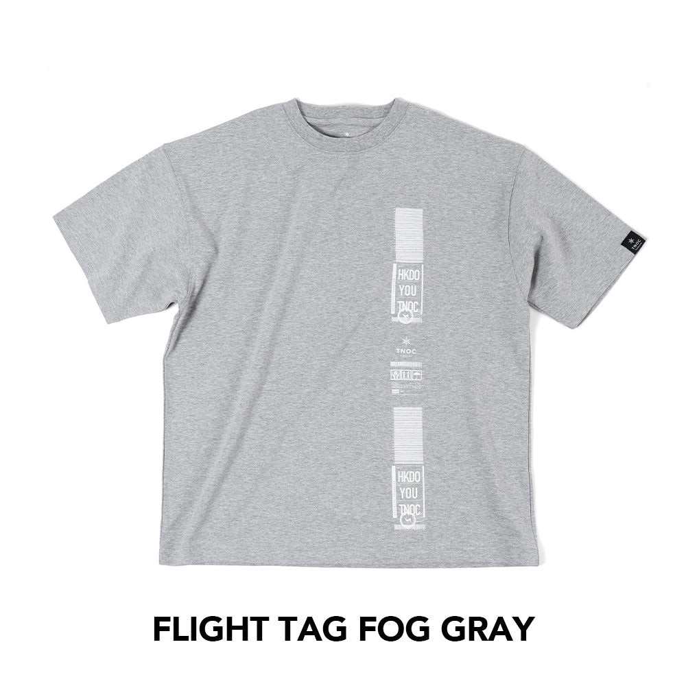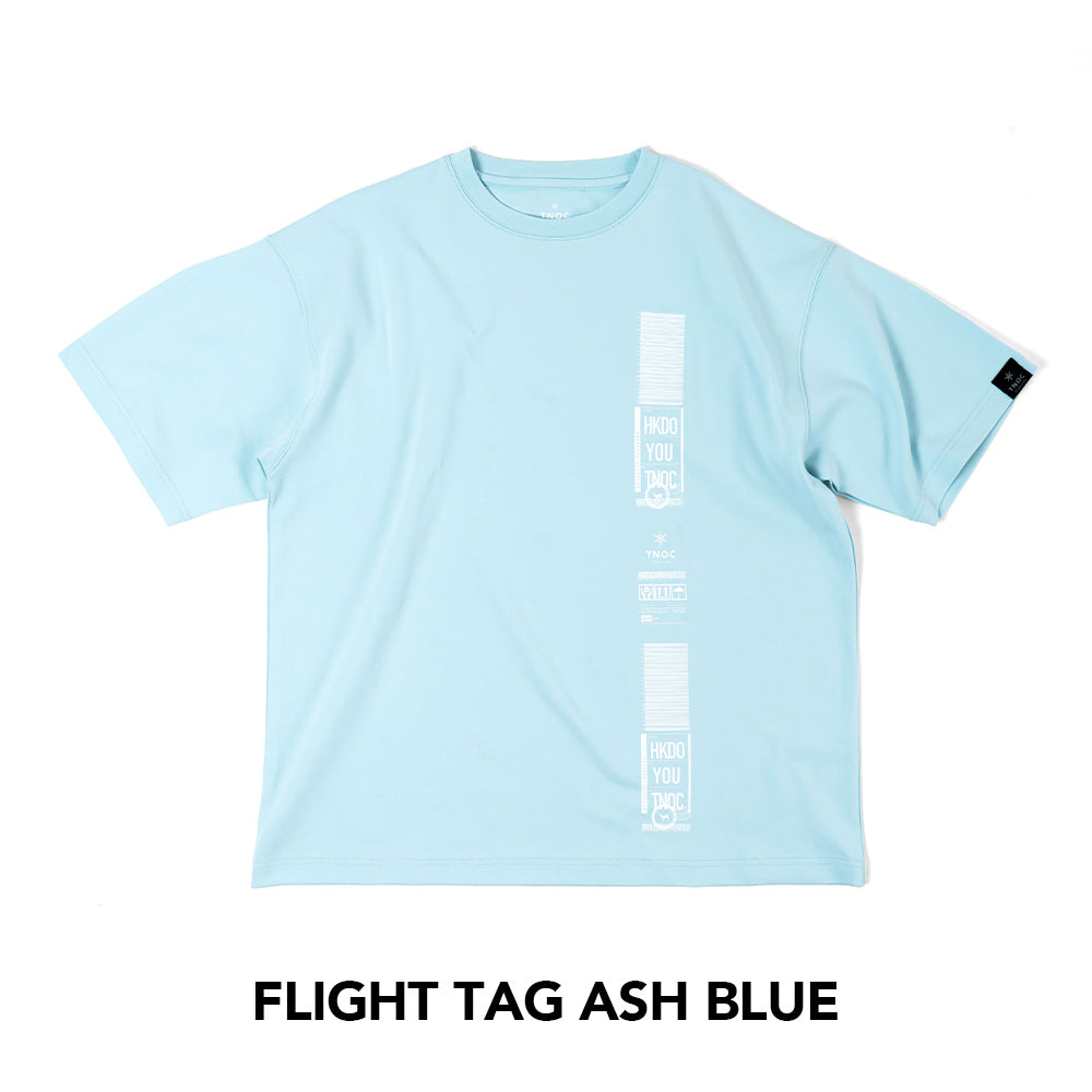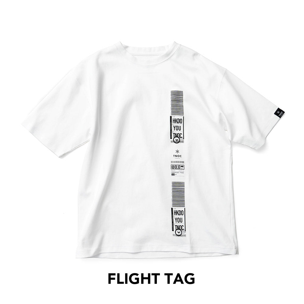 モチーフは飛行機のフライトタグ。旅の気分もあがるTシャツです。
