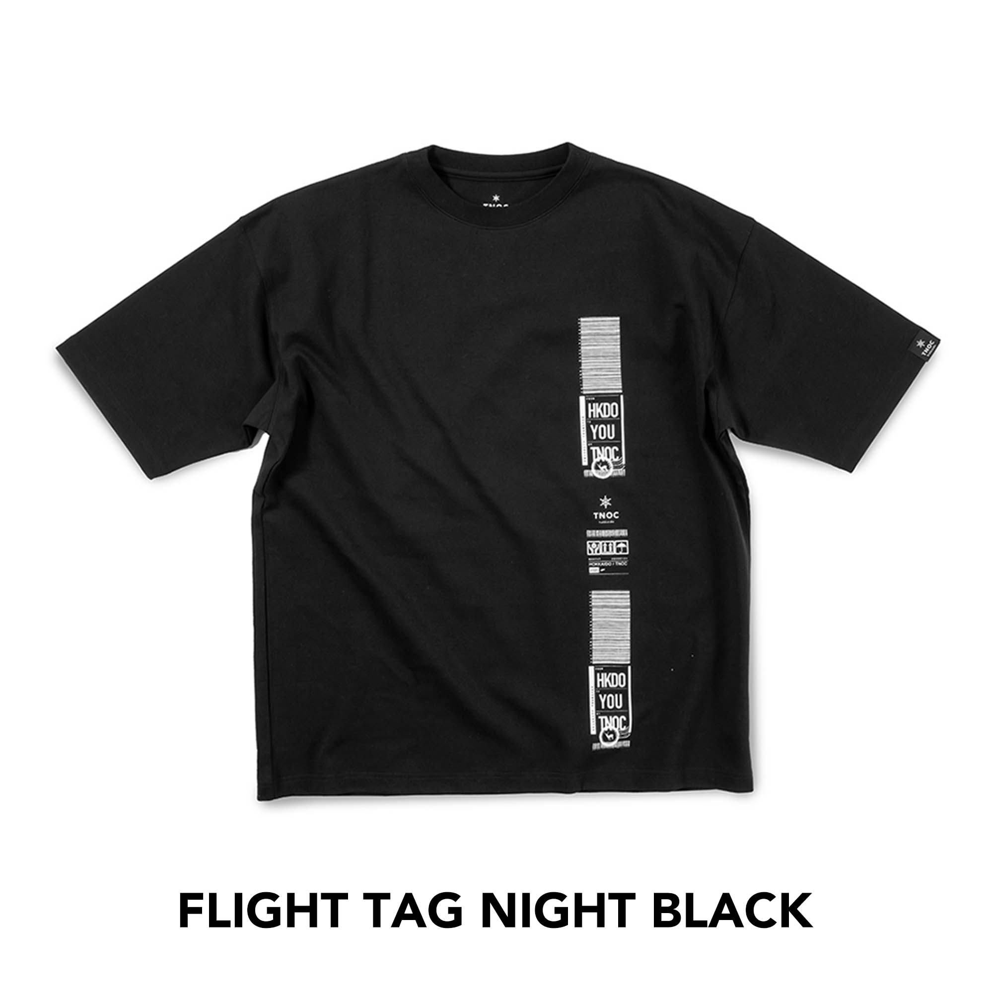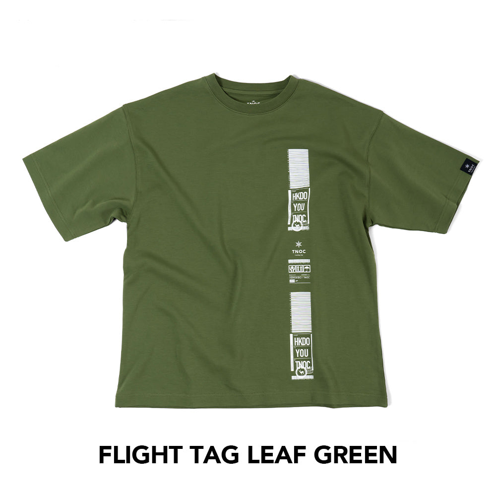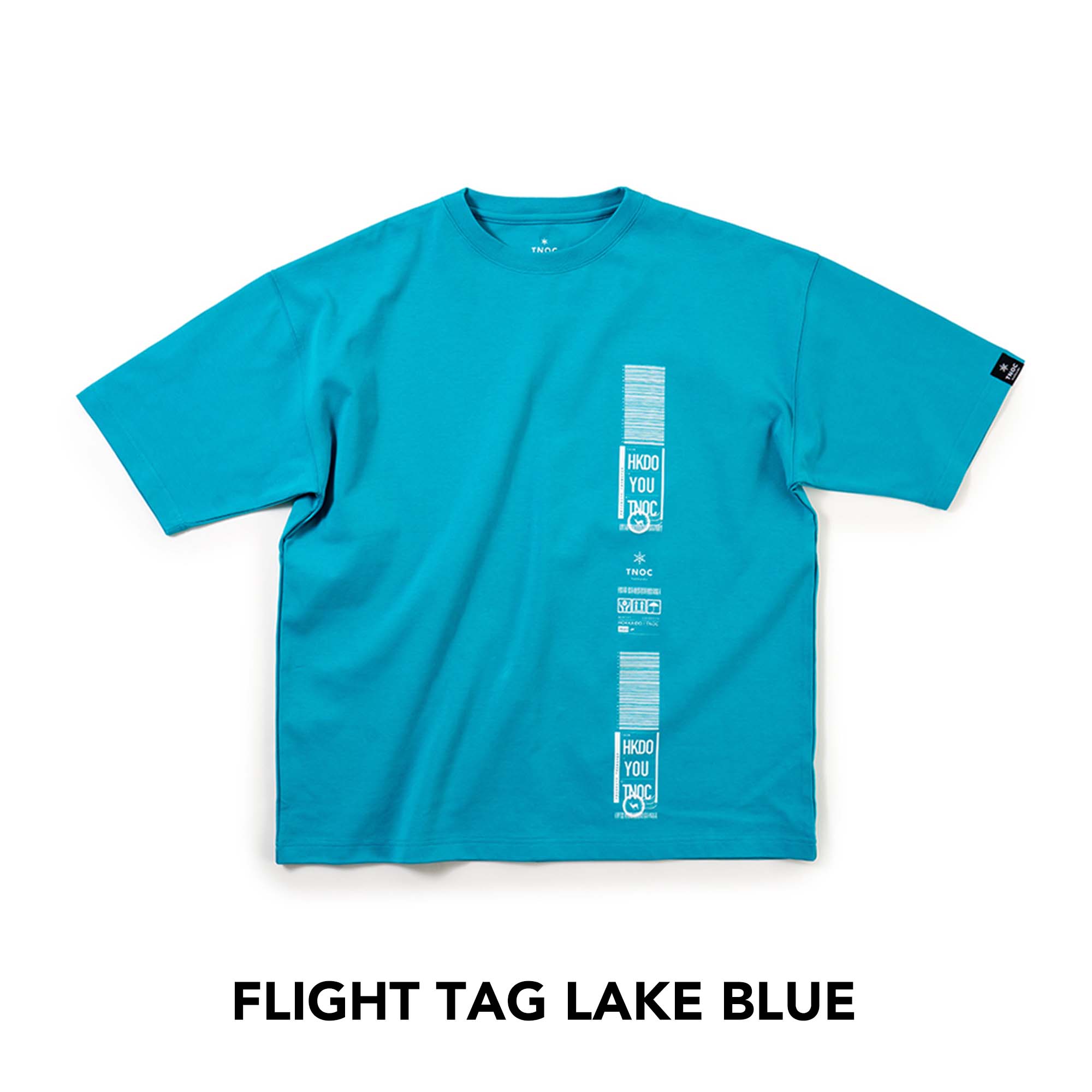モチーフは飛行機のフライトタグ。旅の気分もあがるTシャツです。