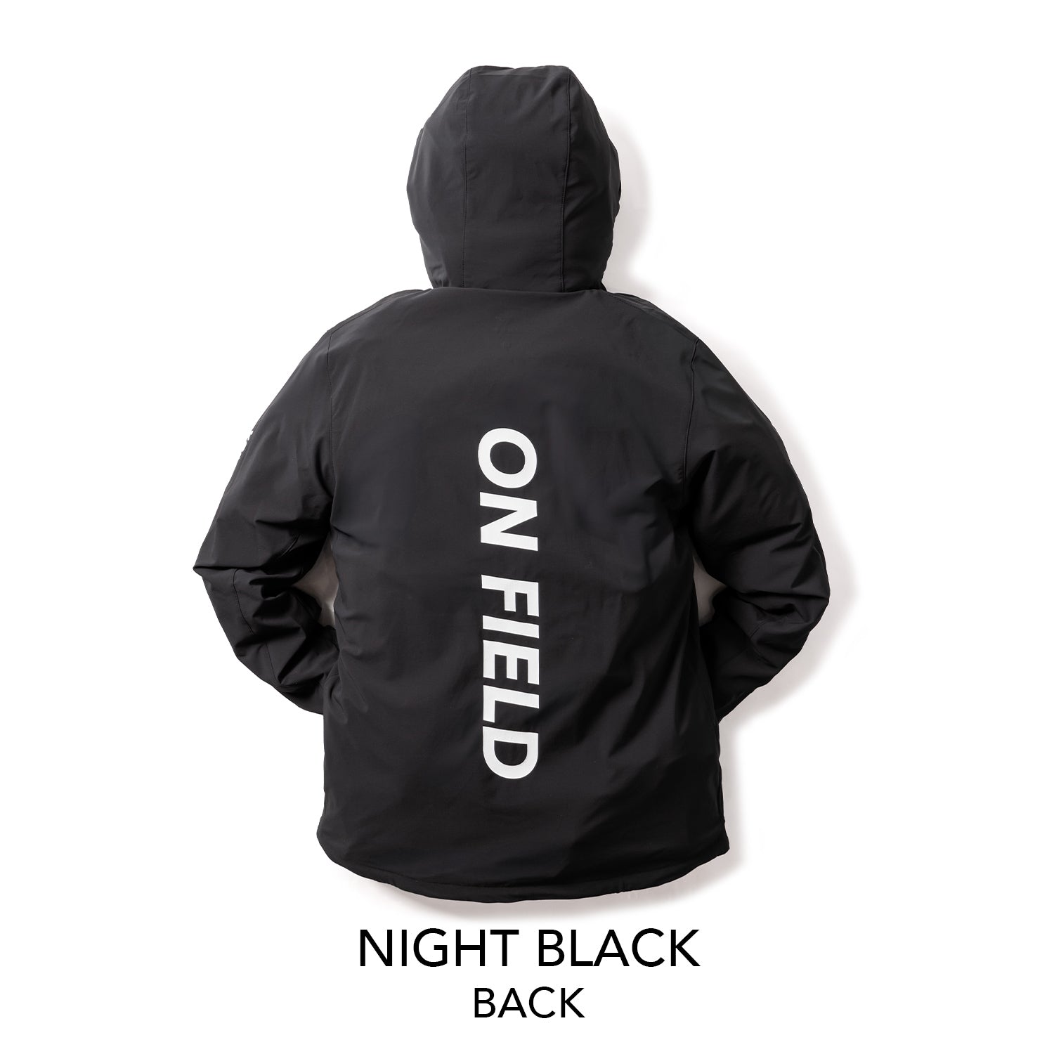 シルエットがキラリと際立ちます。バックにはONFIELDの大胆なプリント。
