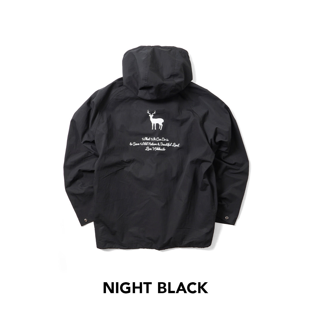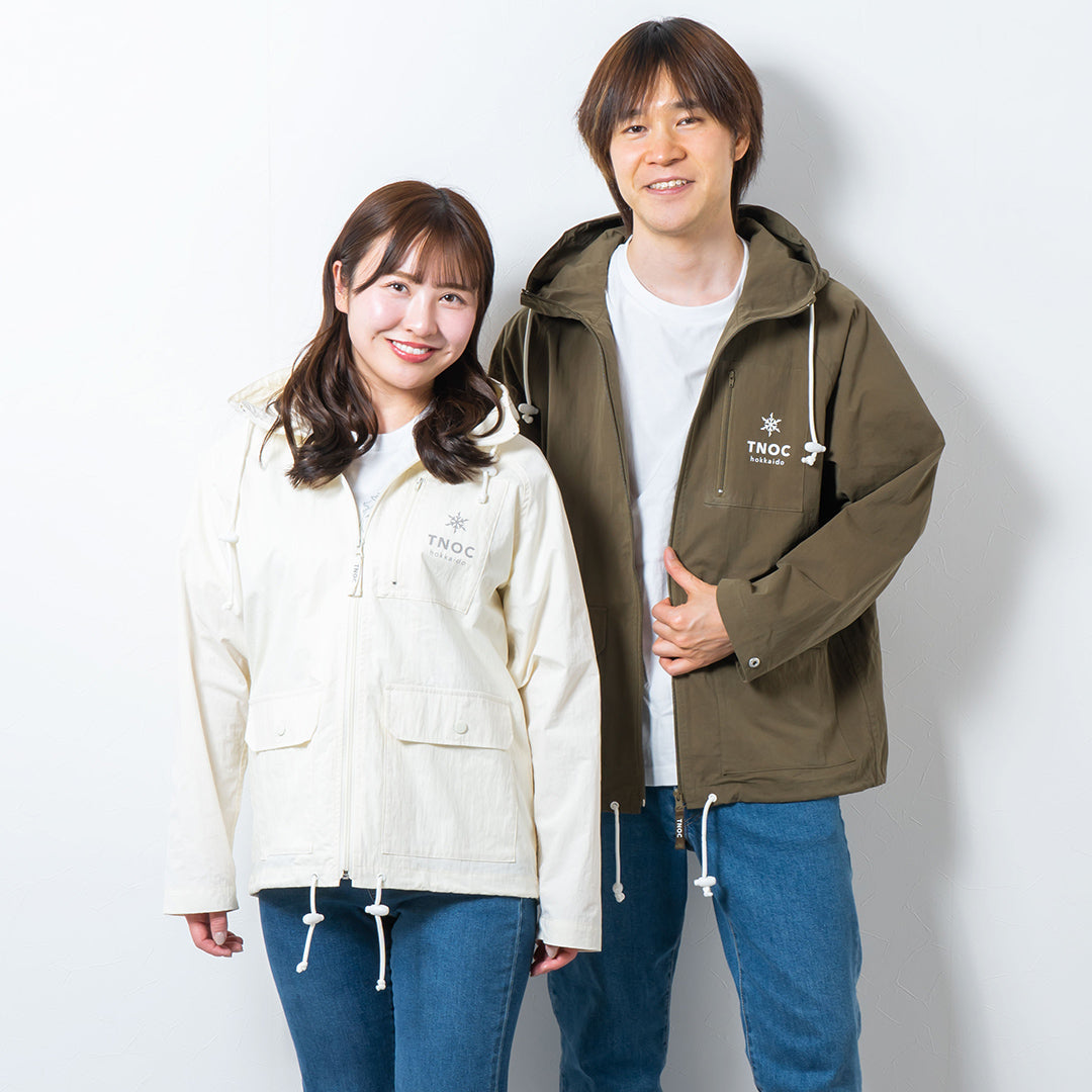 少し寒い日の風よけとして、強い日差しを和らげる日よけとしてもぴったり。胸元にはTNOC hokkaidoのロゴを、そしてバックには大きくエゾシカのシルエット。TNOC hokkaidoらしさが際立ちます。