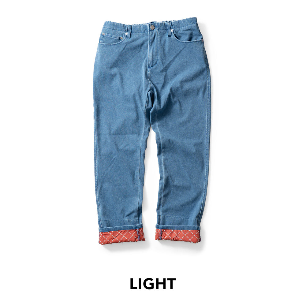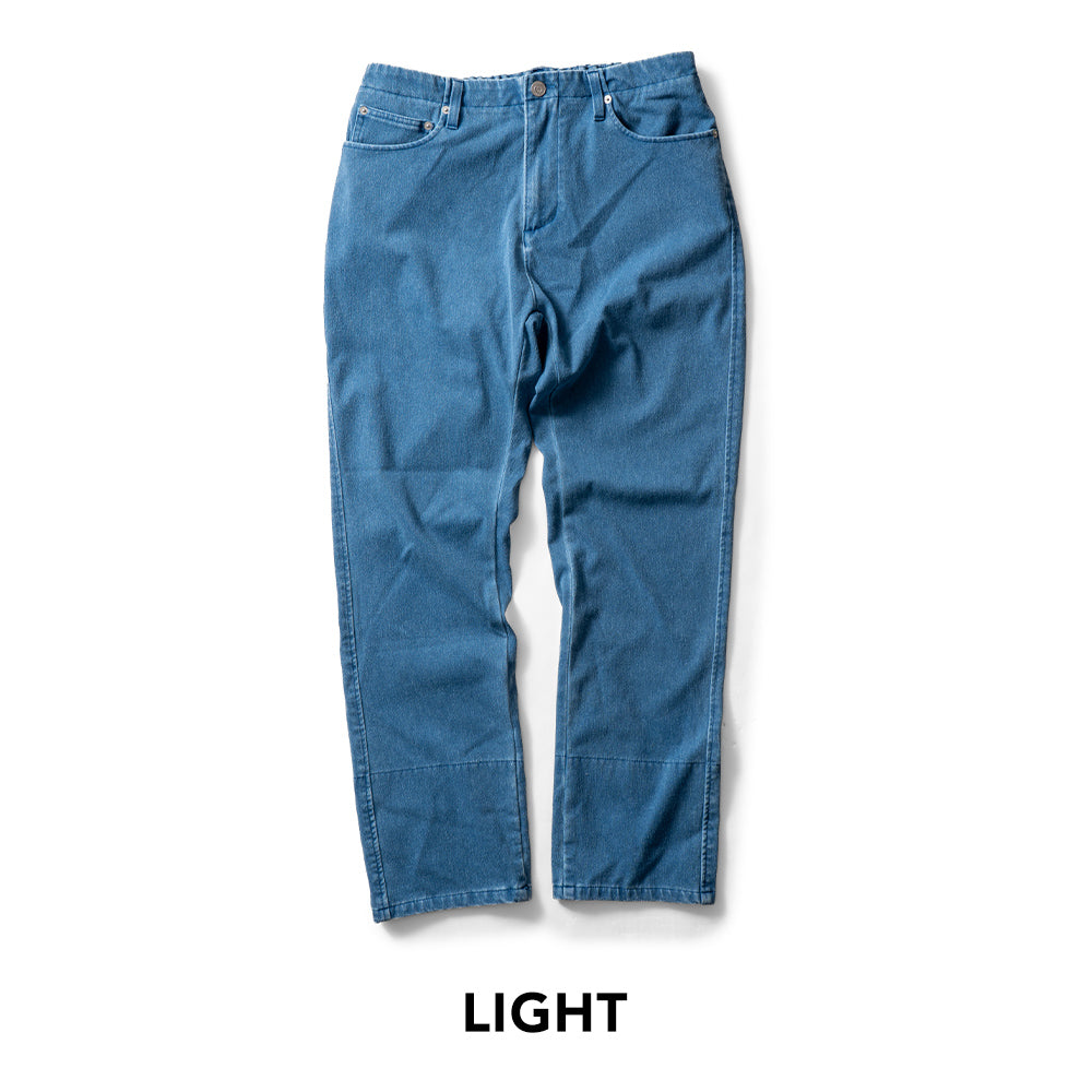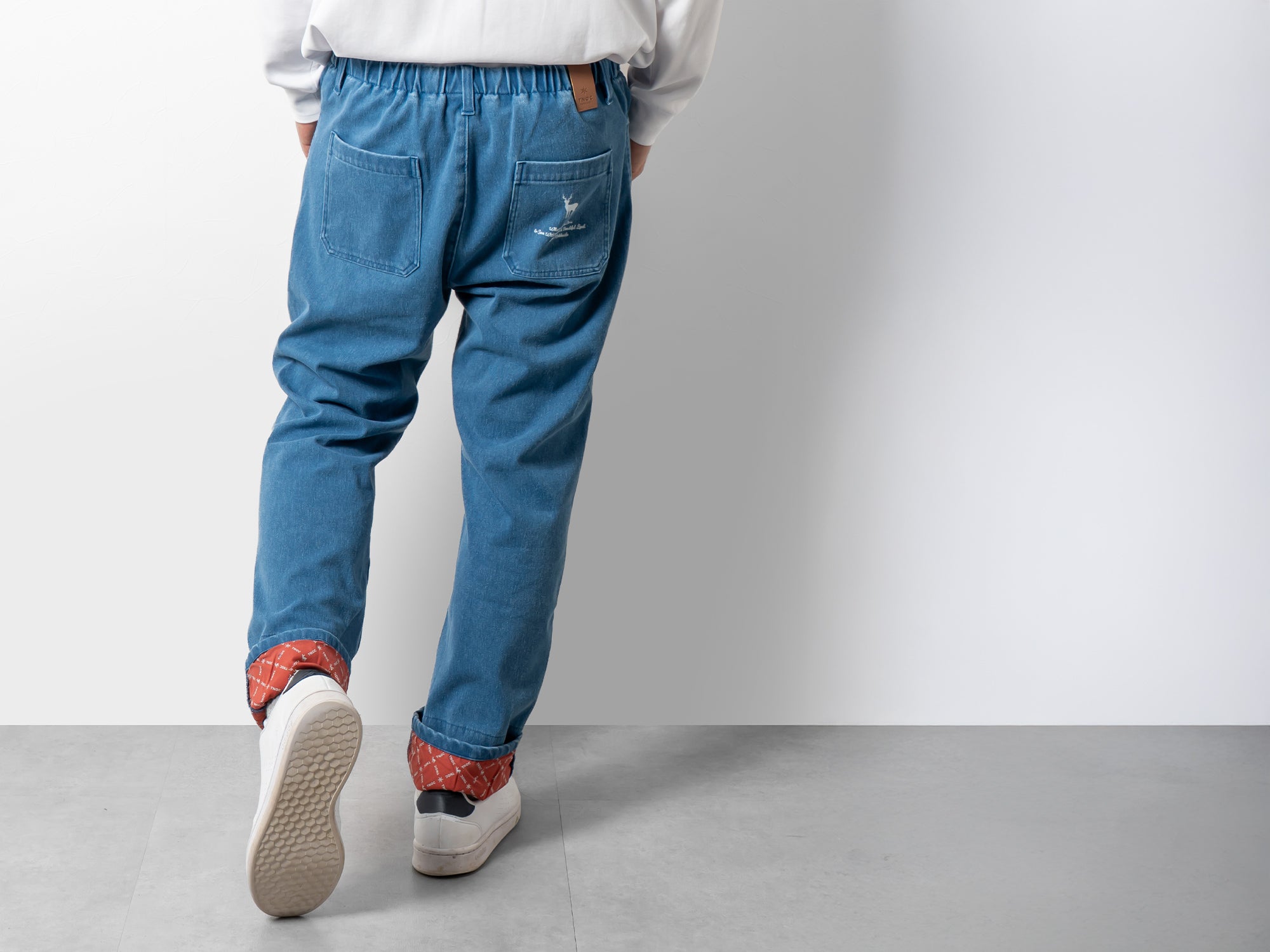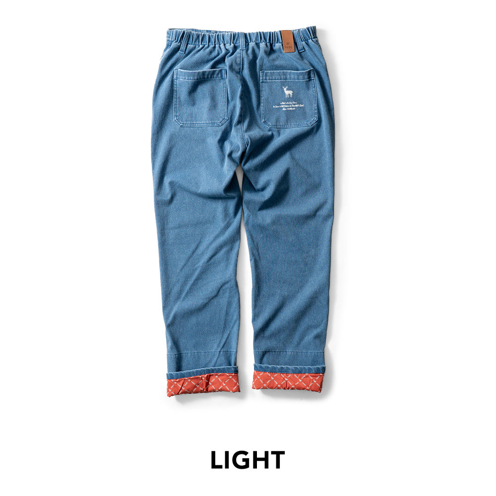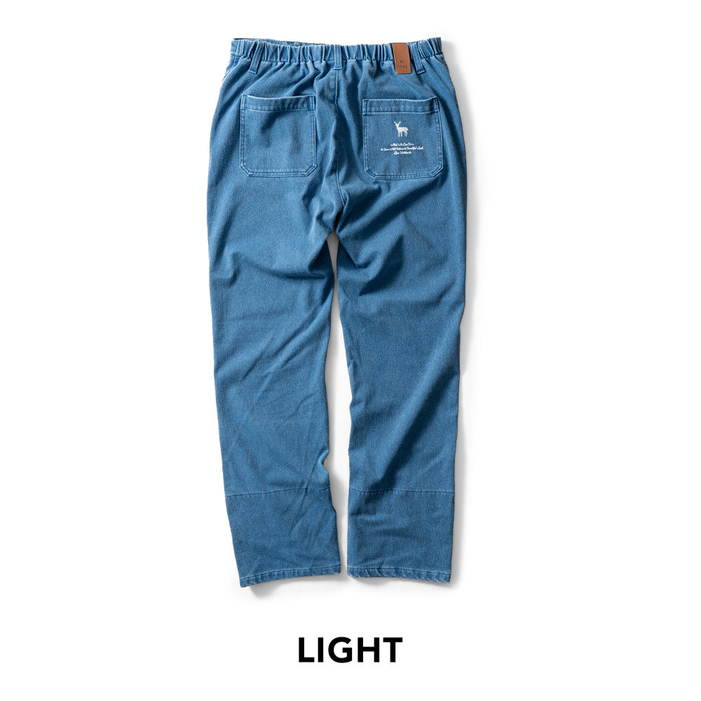 The straight silhouette offers a relaxed fit suitable for any body type or gender, and the inner fabric features the TNOC Hokkaido monogram, letting you roll up the cuffs without alterations.見た目はデニム。でも、はき心地はやわらかくて軽やか。