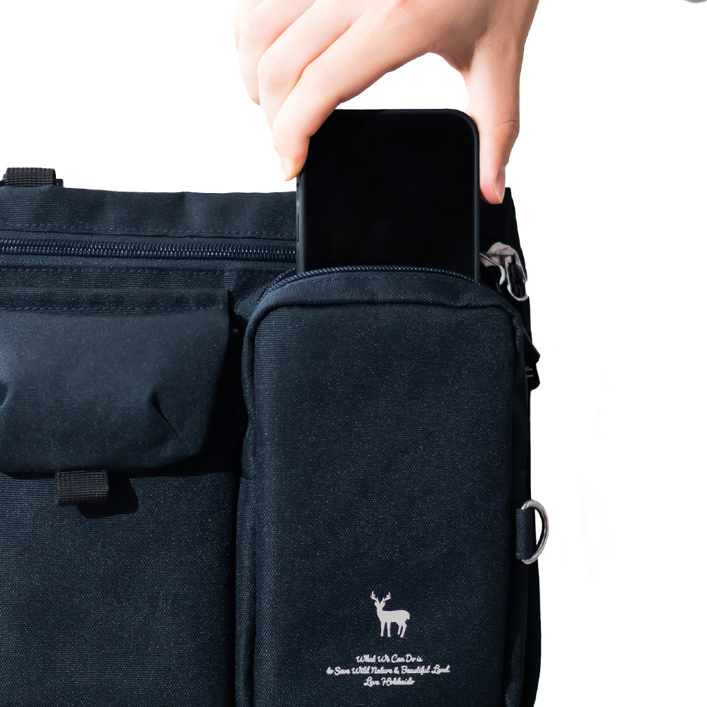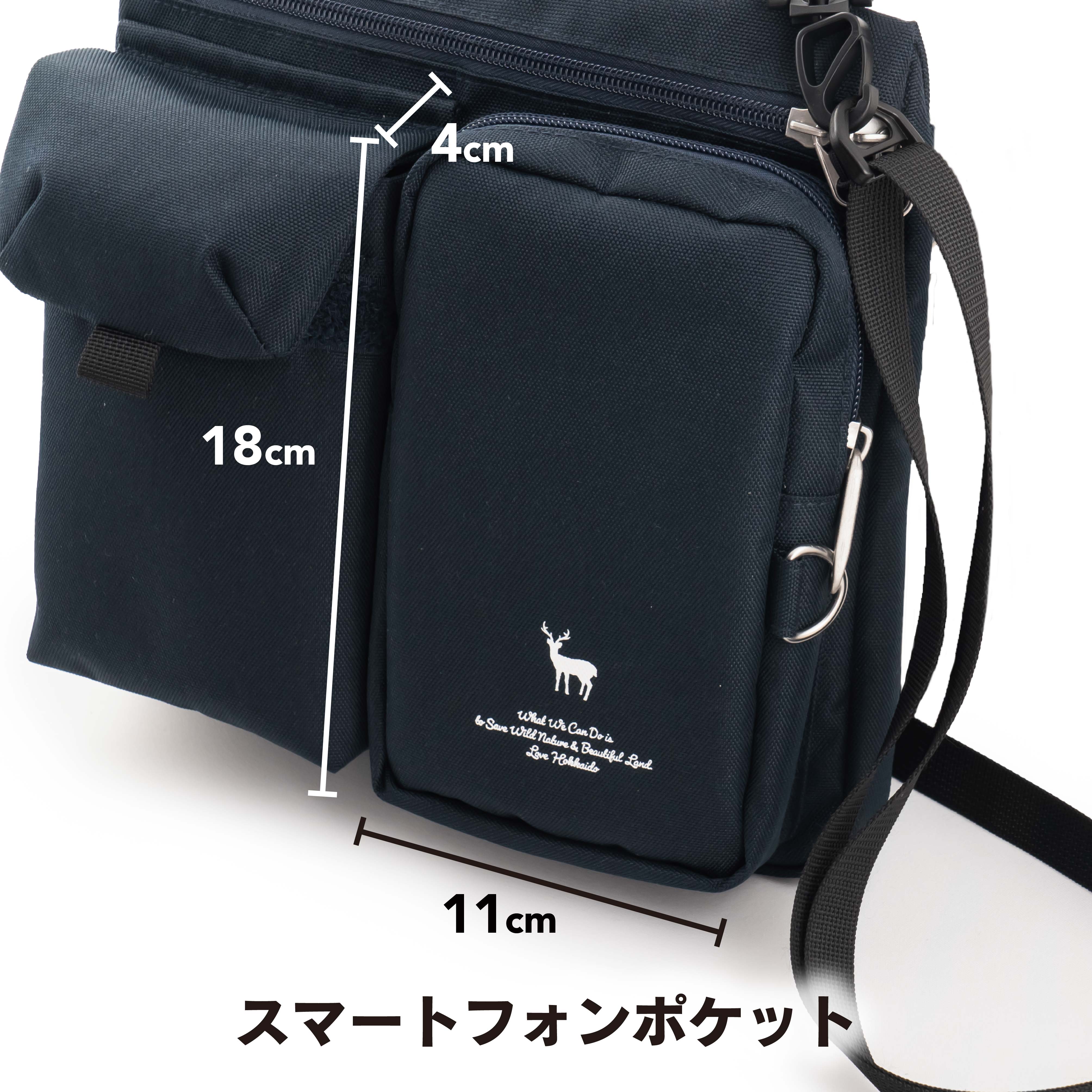 スマートフォンポケットは大型のスマートフォンも楽に入るサイズ。