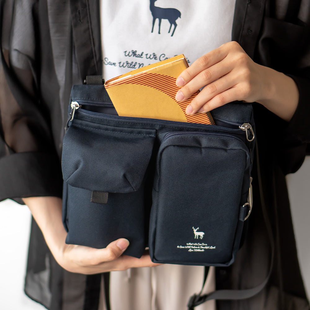 メインポケットは小説や単行本、お財布、そしてお菓子を入れられるサイズ感。