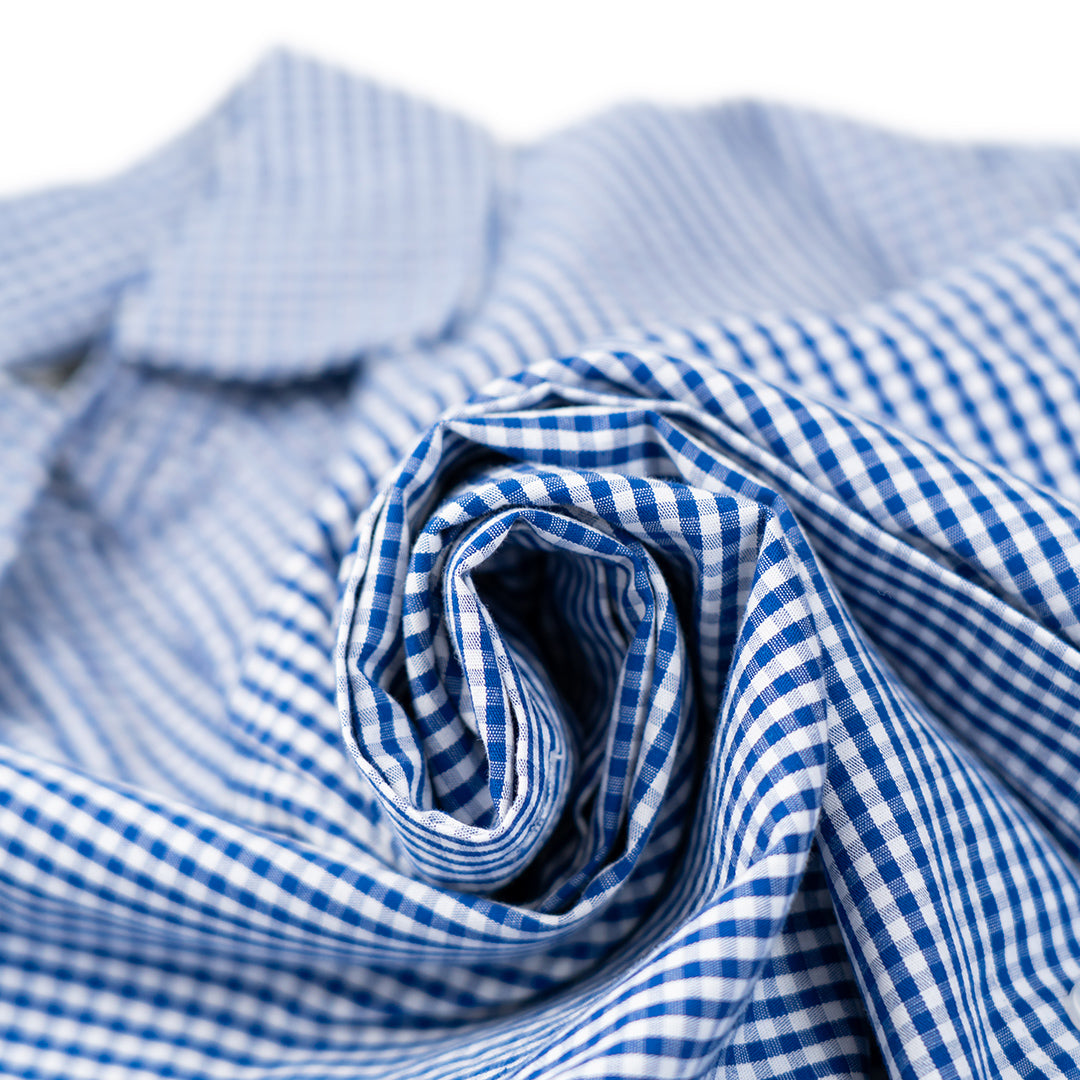 明るいカラーとギンガムチェックが爽やかな風を連れてきてくれる、そんなシャツをお作りしました。