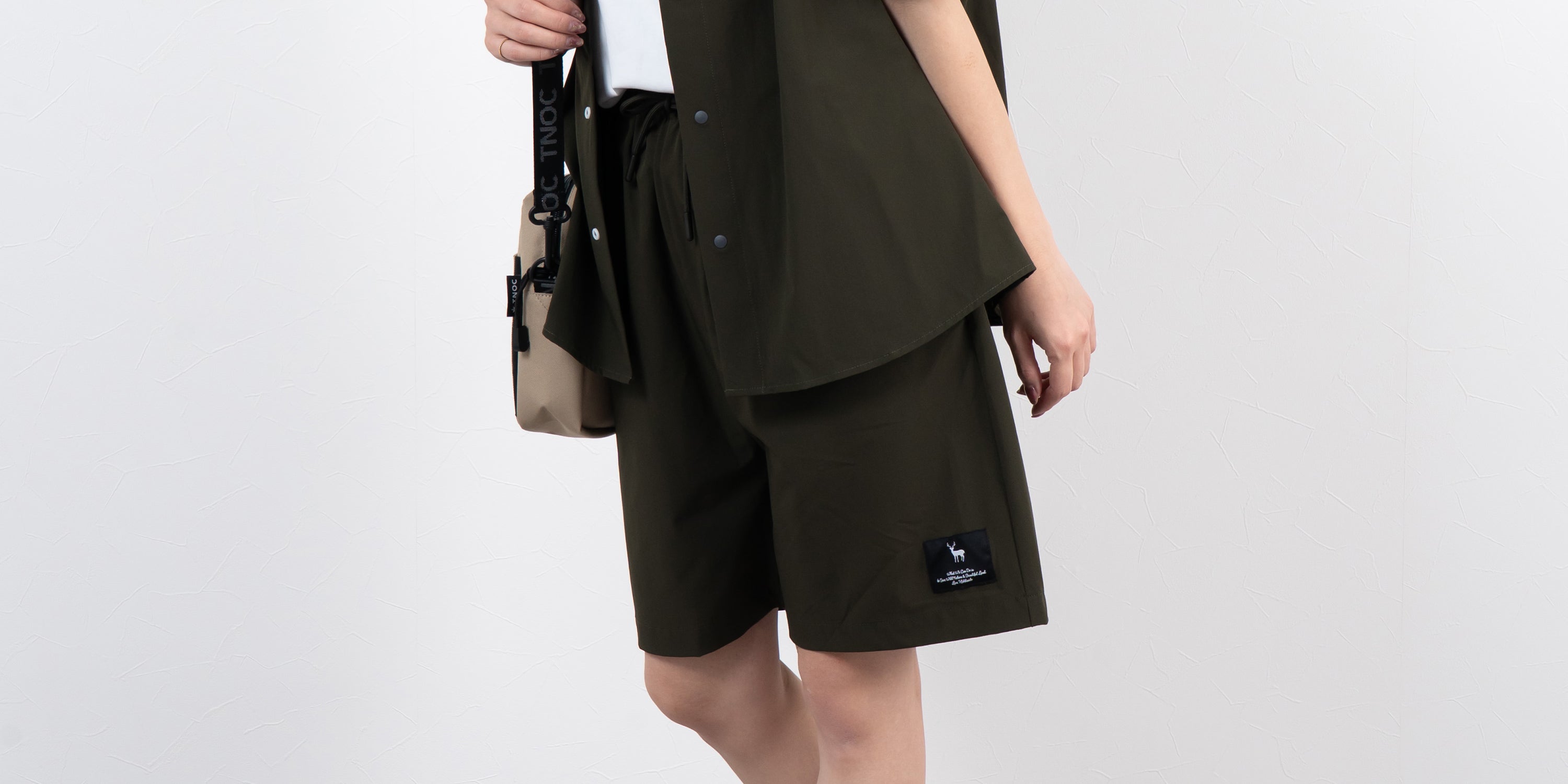 These are SHORTS-NS made from lightweight NYLON SKIN (NS) fabric that brings a crisp texture and natural wrinkles, perfectly suited for the comfort of spring and summer.