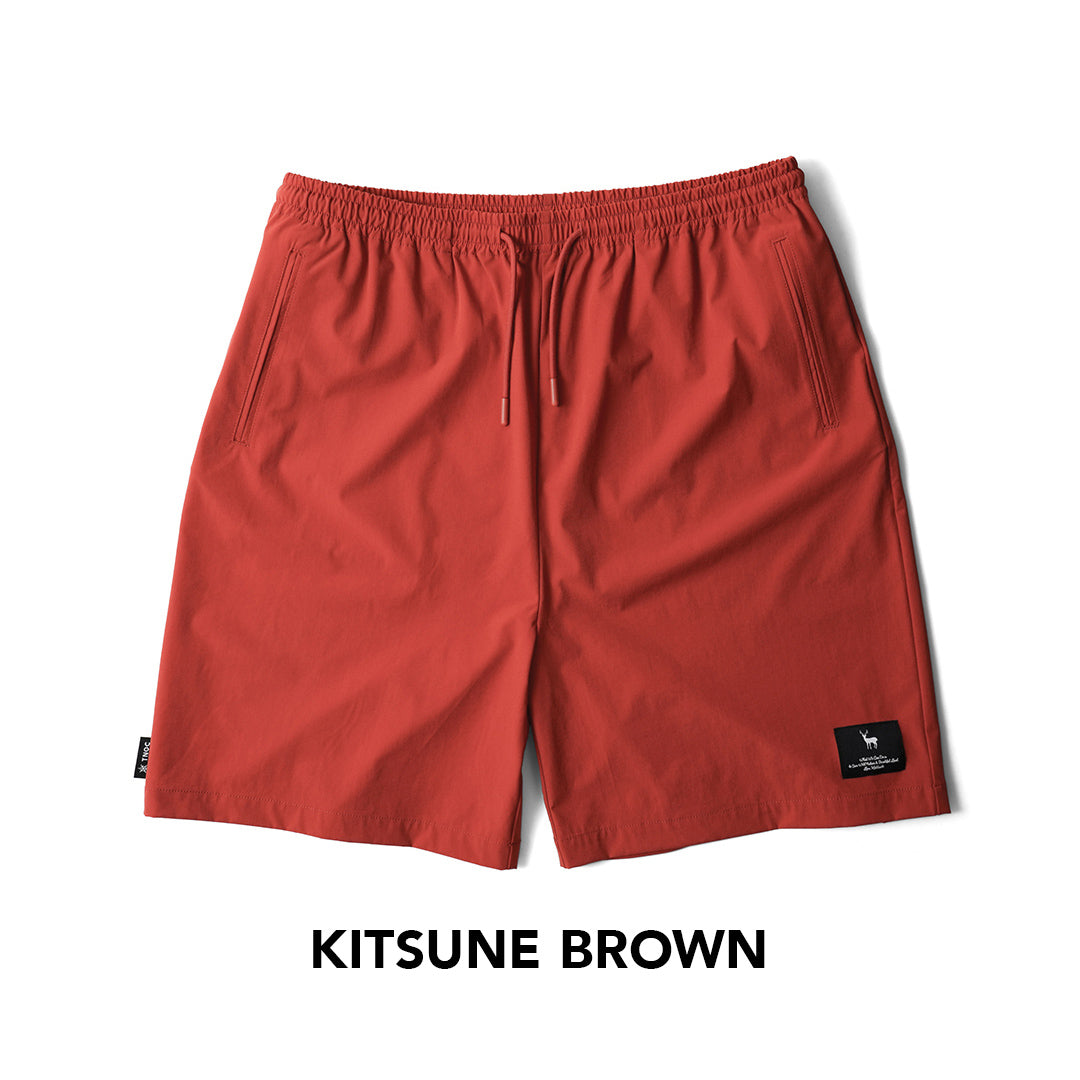 深みのあるリーフグリーンは、大人の落ち着きと遊び心をあわせ持つカラー。白のTシャツやシャツとあわせたセットアップで、近くのカフェやお散歩へ。ジェンダーを問わず楽しめる、夏にぴったりの一枚です。○KITSUNE BROWN