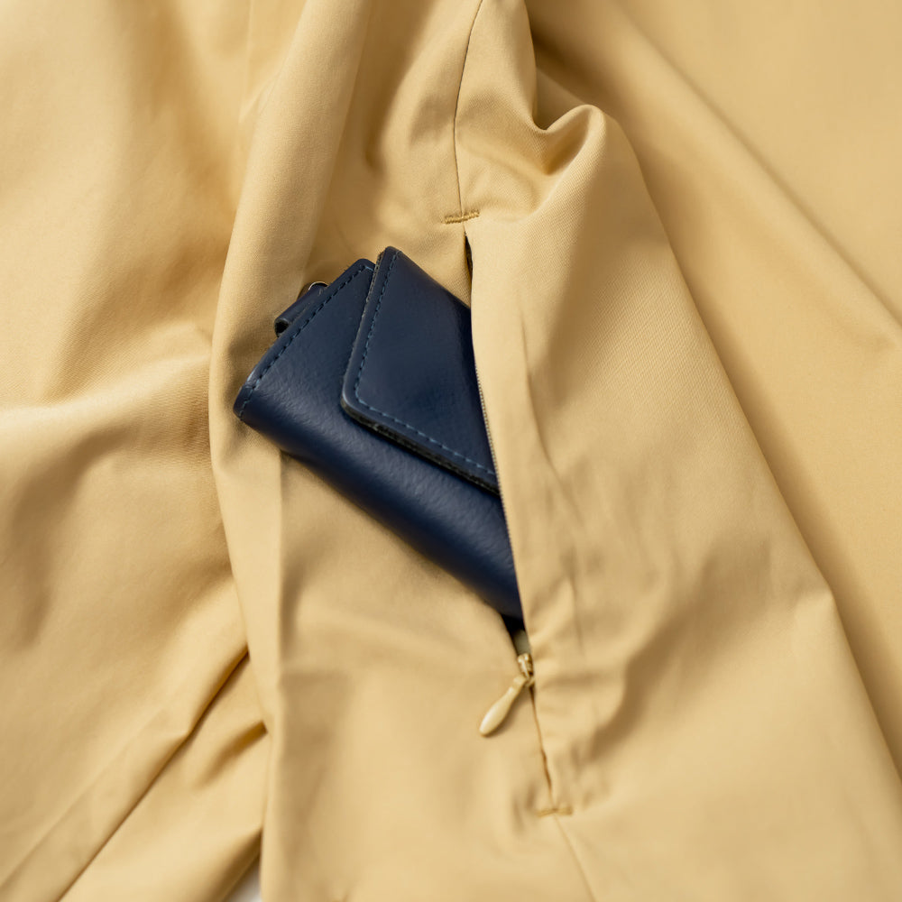 ポケットにジップがついてるので、鍵やスマホを落とす心配もありません。