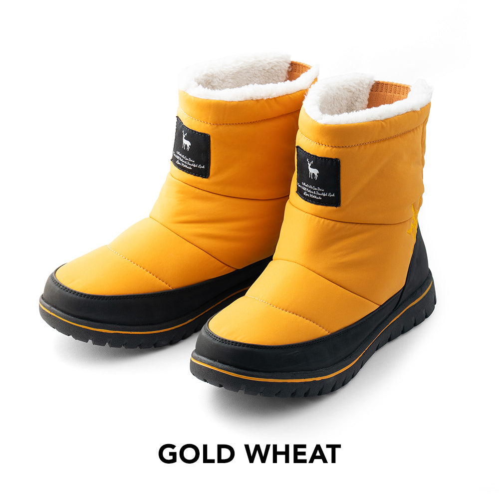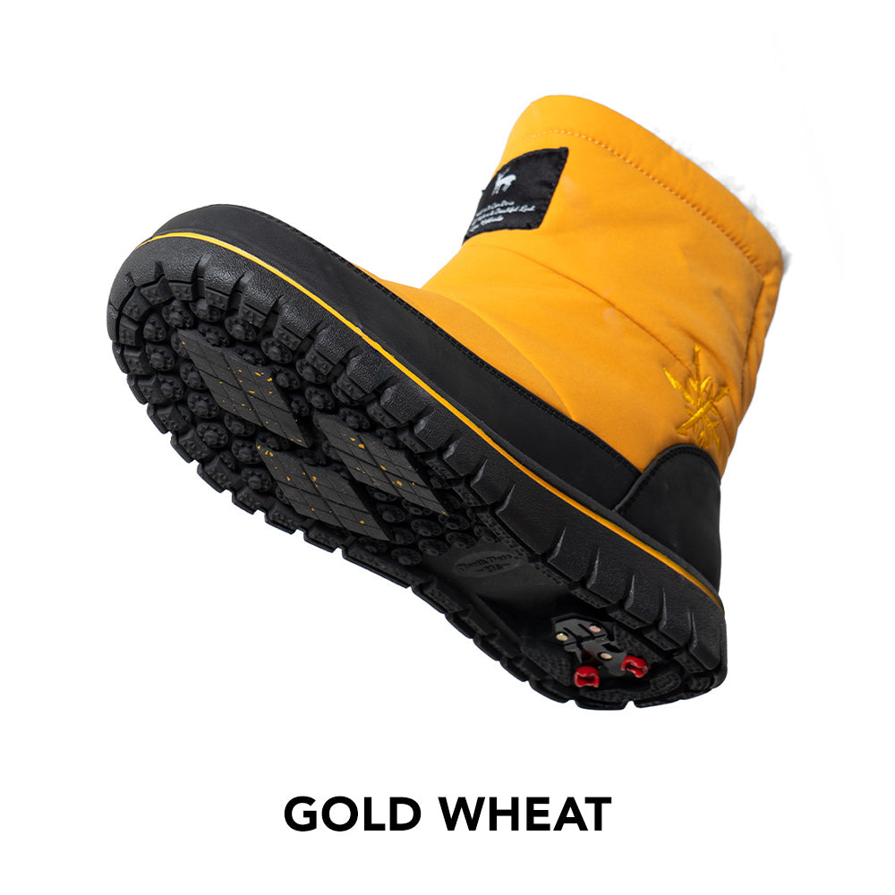 雪道に映える明るいGOLD WHEATは、TNOC hokkaidoだからこその元気の出るカラー。ひときわ目を引く存在感がありながらも、アウトソールがブラックなので子どもっぽくならず、上品な印象を保ってくれます。