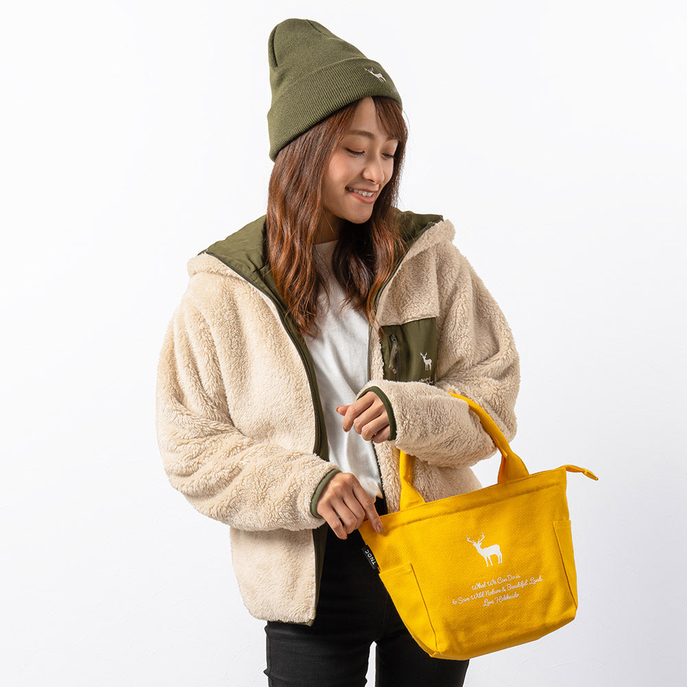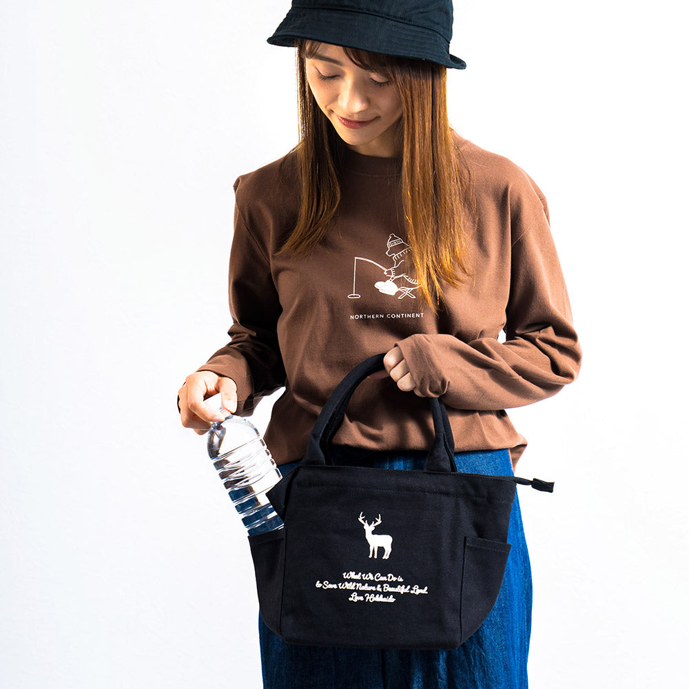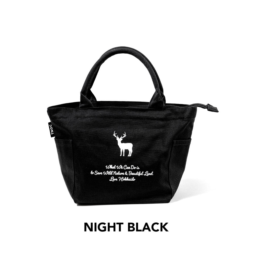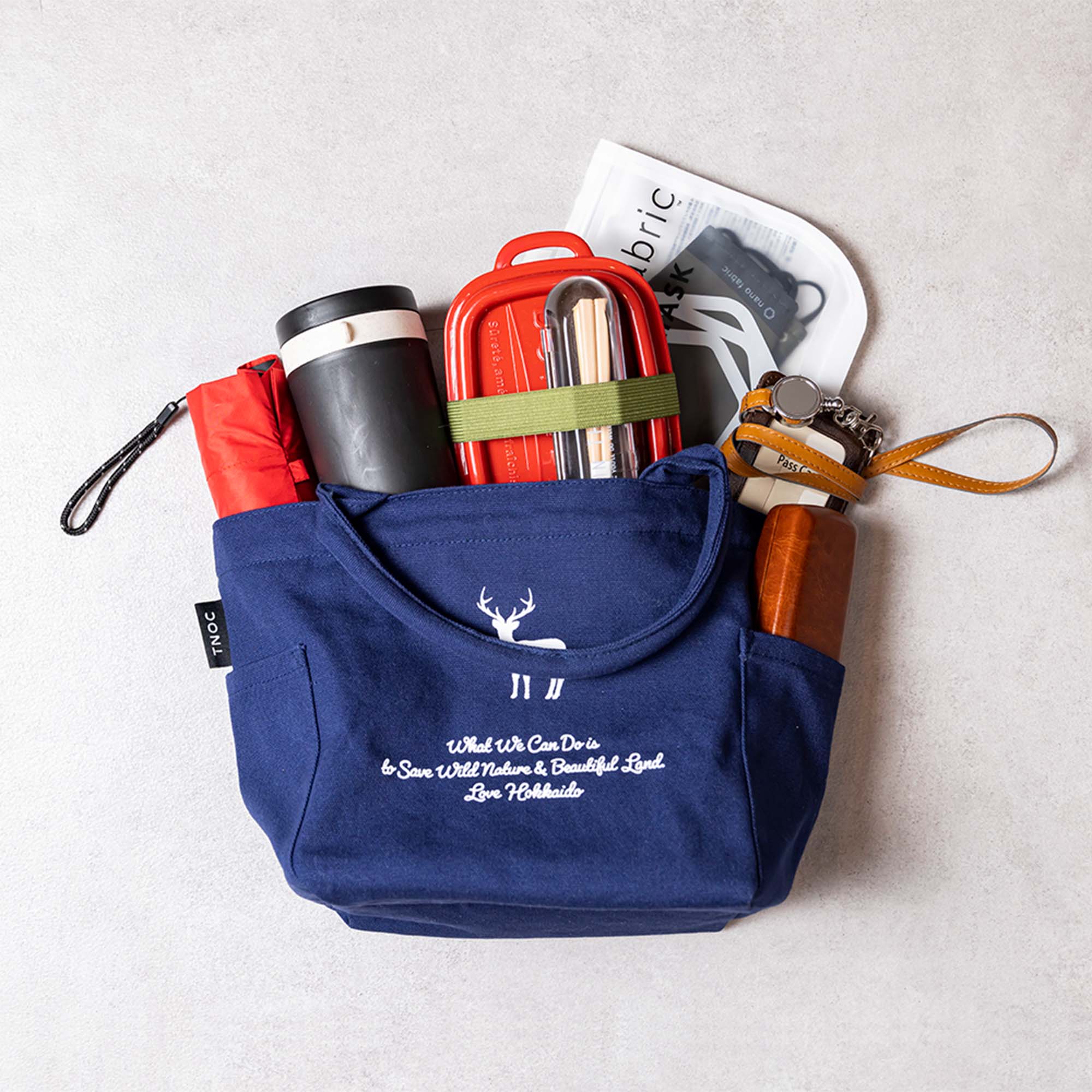 エゾシカのシルエットにTNOCのコンセプトがおしゃれに描かれたサイドと、TNOCのロゴがクールなサイドのダブルサイドデザイン。